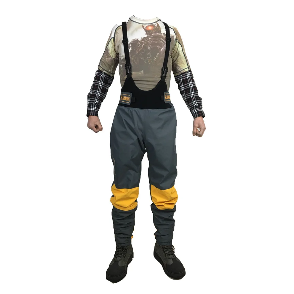 ELUANSHI's wading suit combines comfort, functionality and style. This drifting suit is made of three layers of waterproof and breathable fabric, which will not let you down when you have a good time on the water.