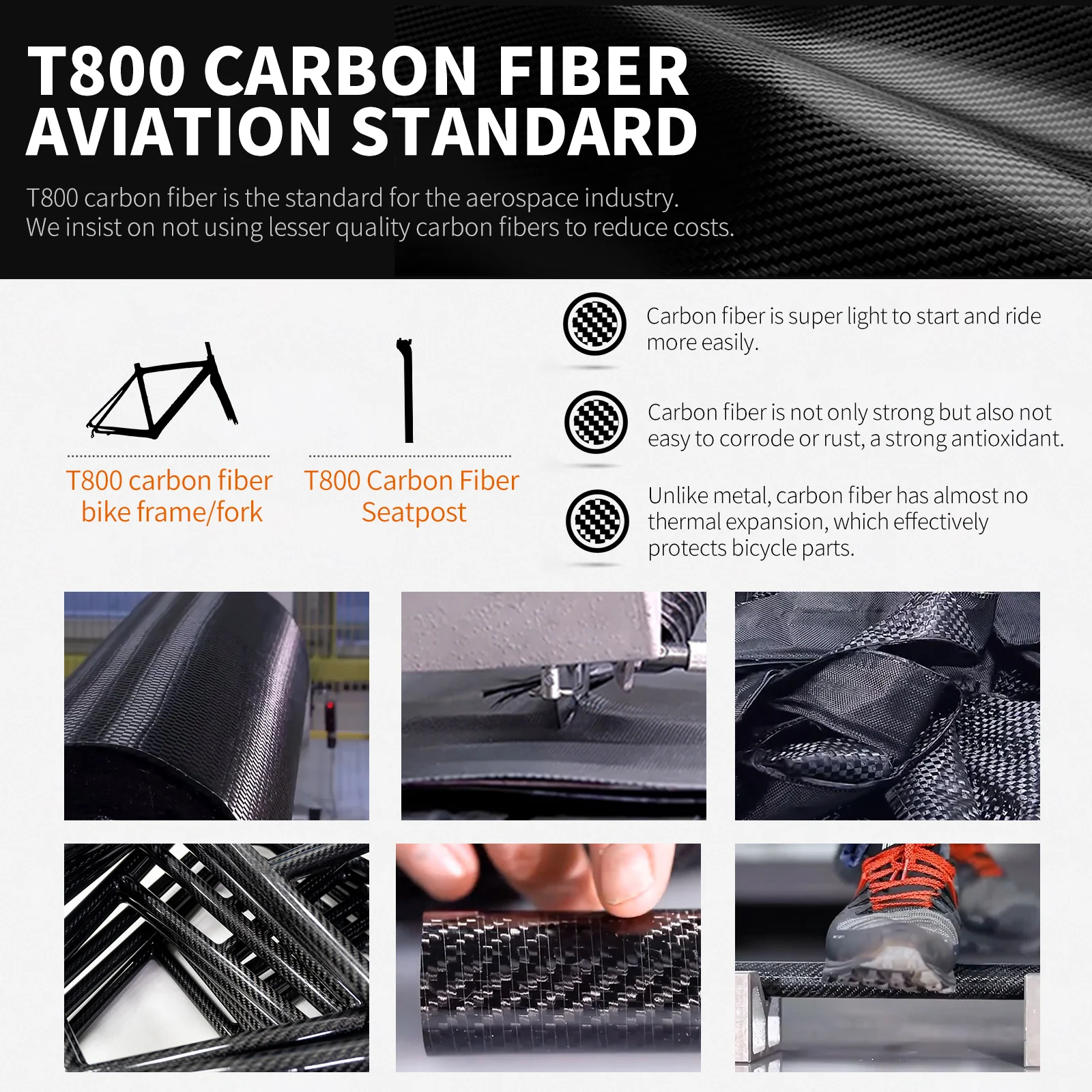 Frame material : T800 carbon fiber