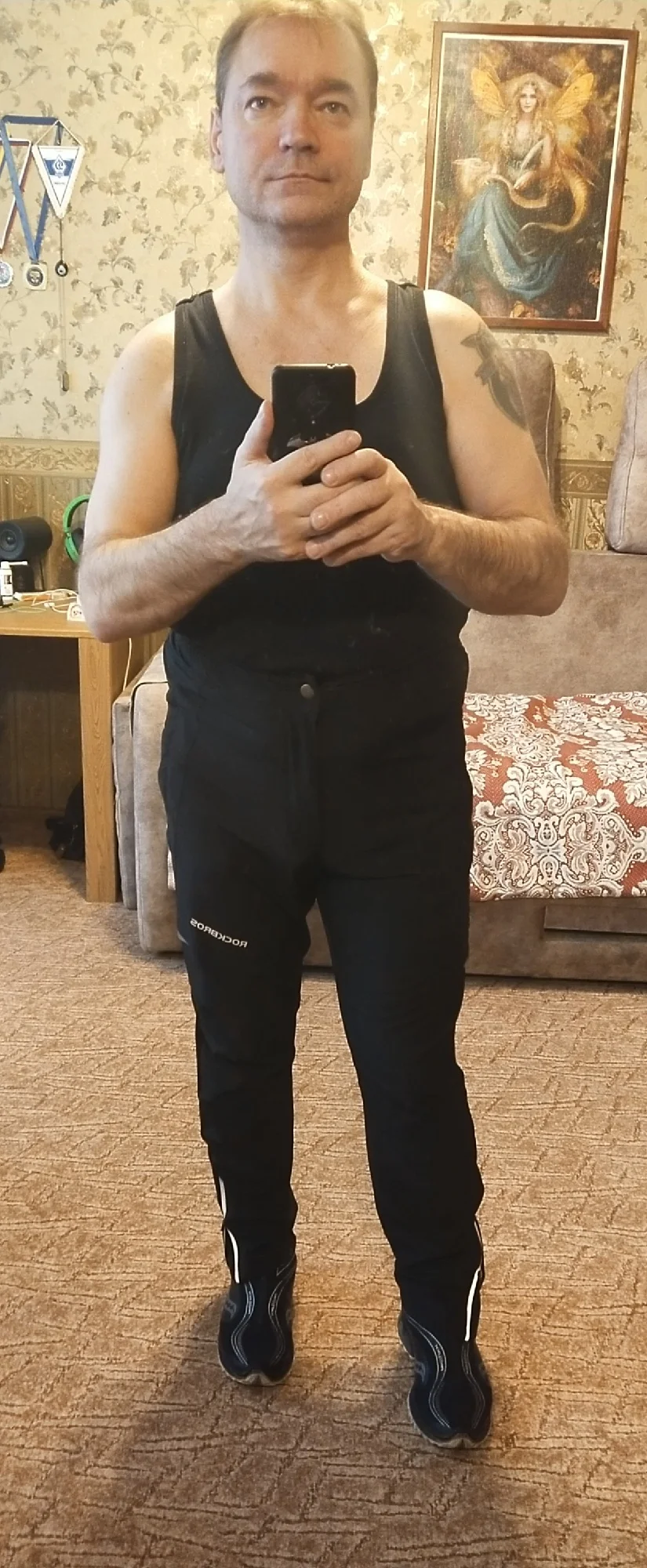 1- размер. мой рост 172. вес 85-87 кг. талия 98 см. бедра 95 см. длина по внутреннему шву (от пола до паха) 80 см. подошел размер азиатский XXL. Когда достал из пакета , был удивлен очень маленькой талии. Но, в поясе вшита резинка и она отлично растягивается. по длинне норм. 2 - ткань. эластичная. не стесняет движений. отлично. 3 - крой. штанины книзу заужены. в цепь попадать не должны. сверху достаточно места для памперса. Все как надо для велосипедных штанов. На бедрах вентиляция на молниях. И сзади вентиляция на пояснице. это хорошее решение. Расстегнул молнию сбоку и получил поток воздуха внутри. Сам по себе крой очень продуманный. артикулированные колени. множество отдельных клиньев. за 1600 руб весной 2025 года - это просто подарок. Однозначно могу рекомендовать эти штаны тем, кому холодно ездить в шортах или религия не позволяет, или крапива… 4 - исполнение. не идеальное. как всегда немного ниточек торчат. но, близко к идеалу. Из минусов отметил бы застежку - крючок. мне кажется, не самый надежный вариант. но его дублирует шнурок. ны отказывайтесь от него ни в коем случае. это же страховка)