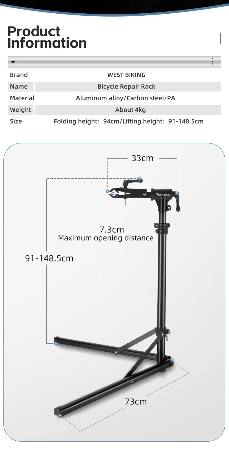 Складная регулируемая велостойка West Biking