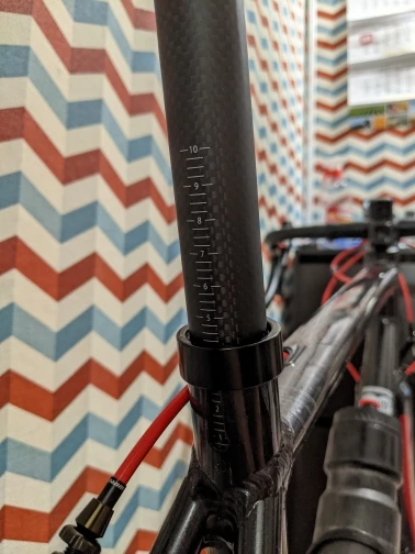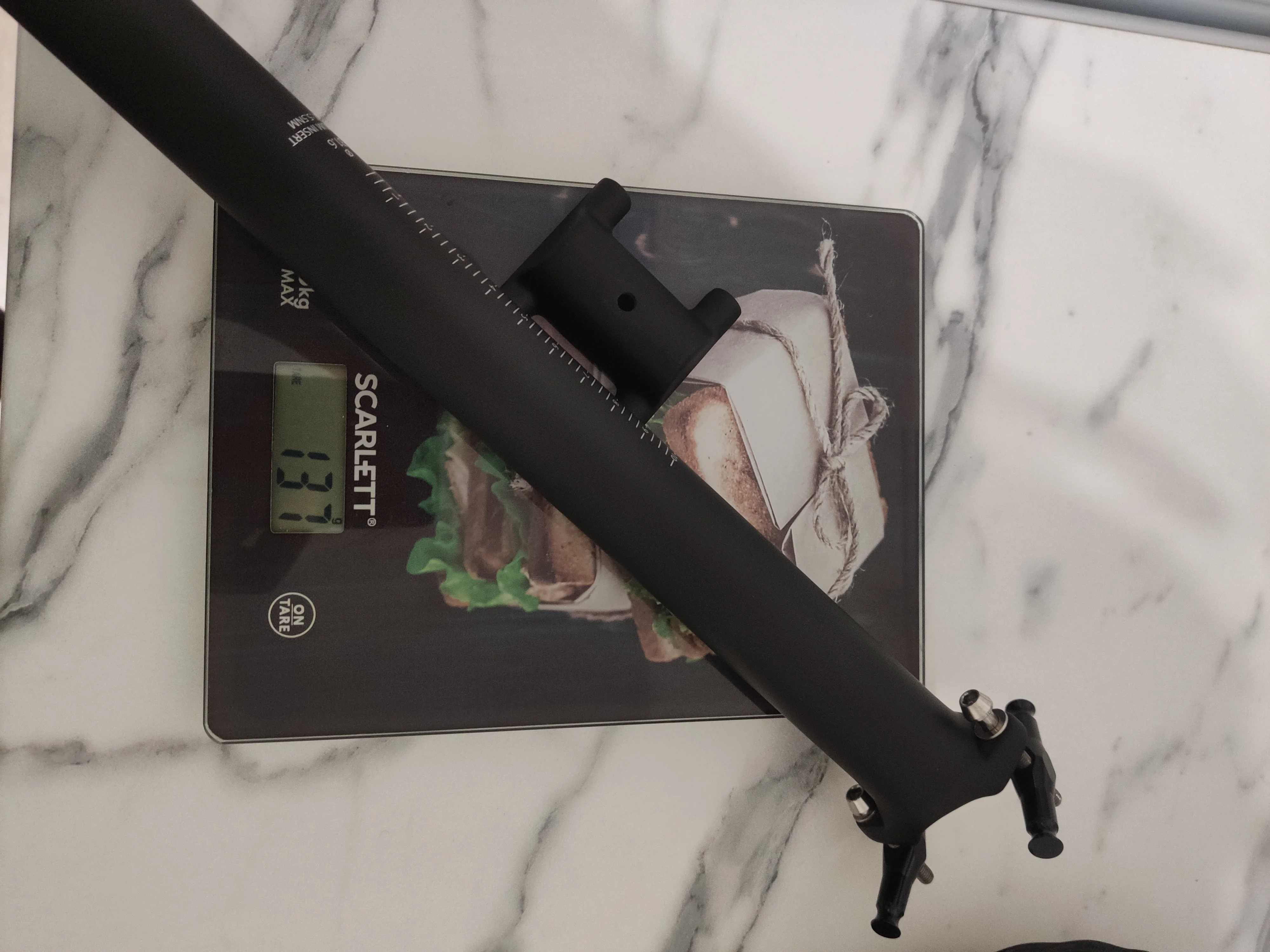 Отличный лёгкий подседел, шкала удобна в использовании, хорошо читается. Подлезть динамометрическим ключом удобно лишь с одной стороны. Пришло с двумя карбоновыми палками, зажатыми вместо седла, теперь с ними играется кот.