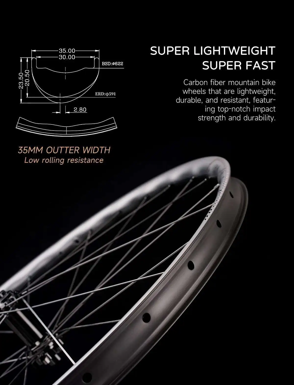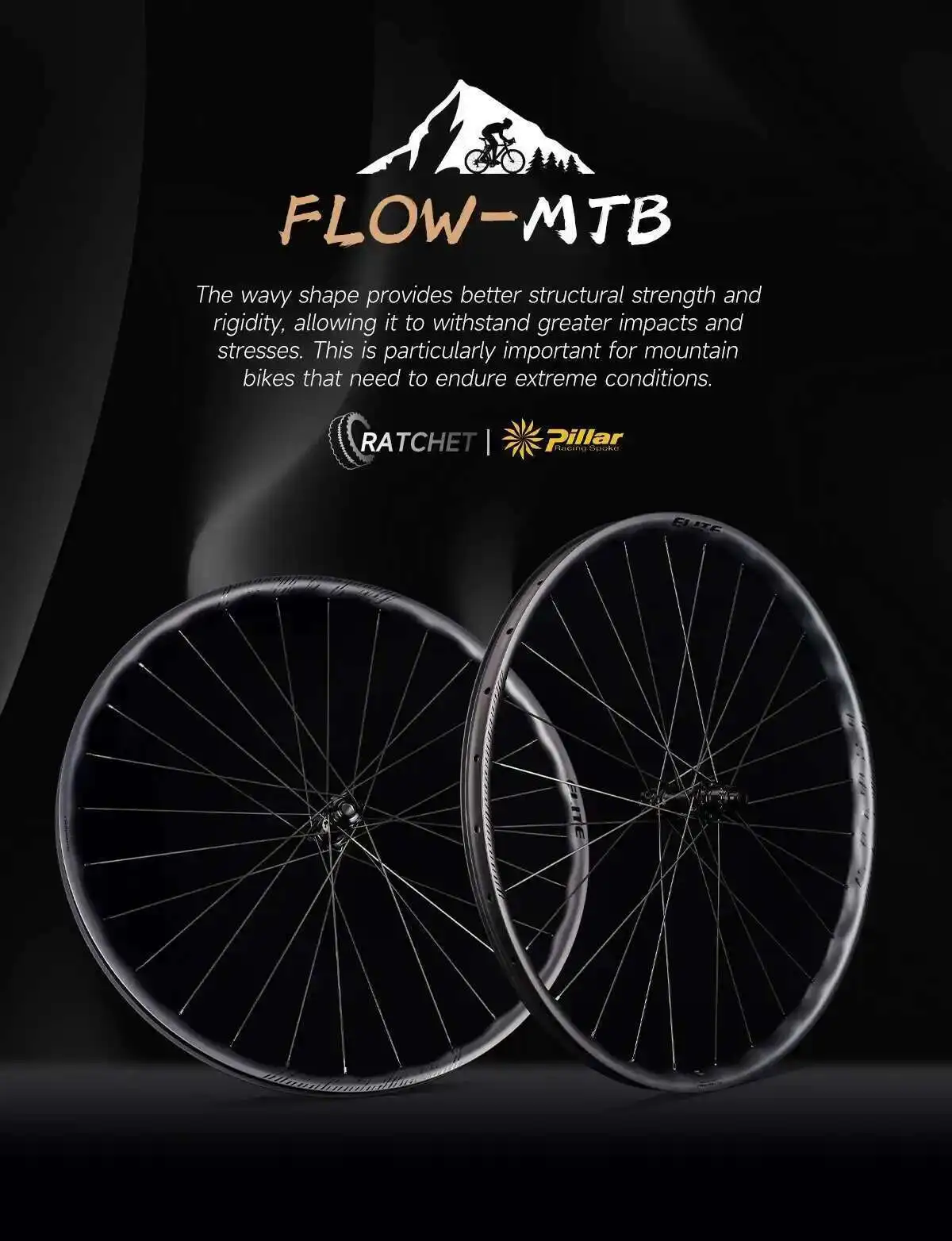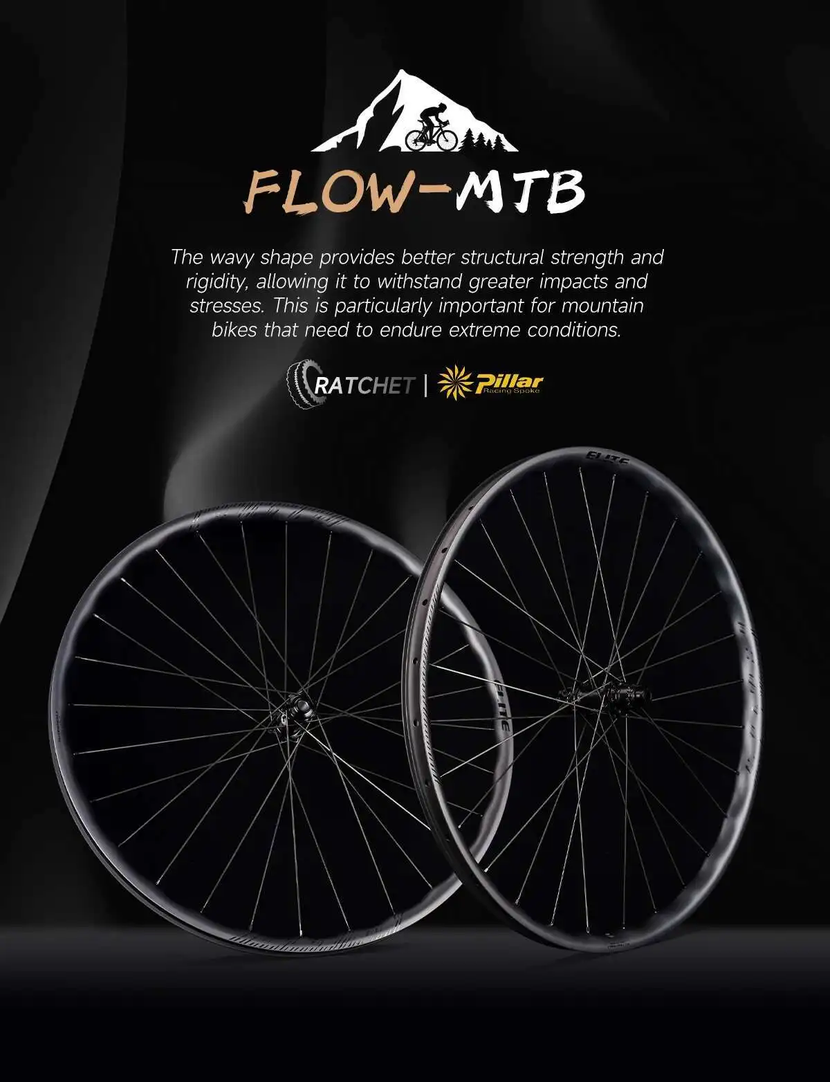 ELITEWHEELS 29er FLOW-MTB Wave-Like Carbon Wheelset Rachet System hub Mountain...