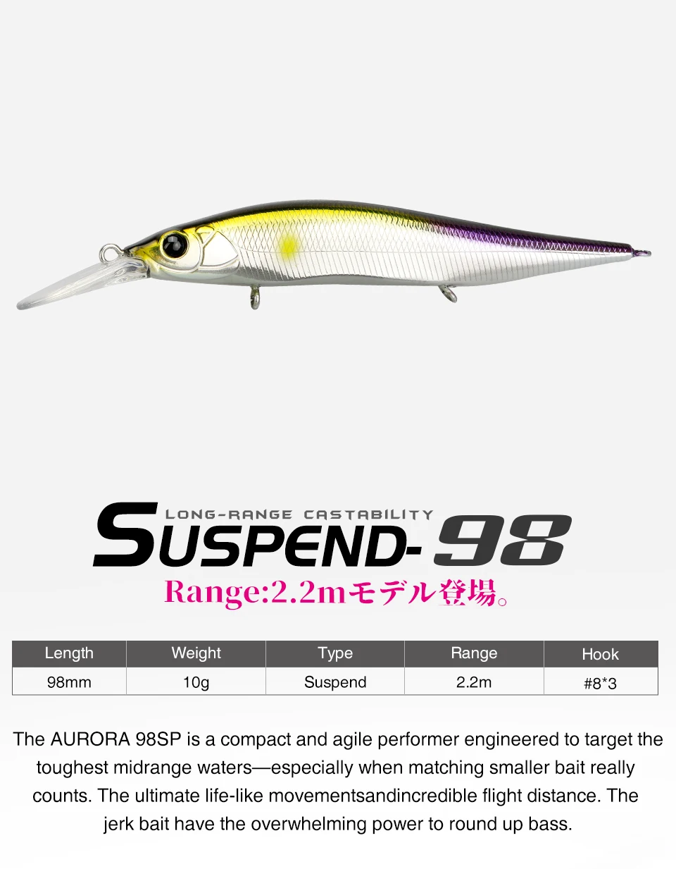 TSURINOYA 98SP Suspending Minnow Fishing Lure AURORA 98mm 10g Max 2.2m Tungsten...