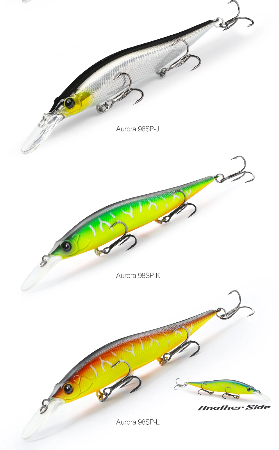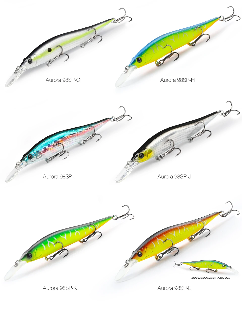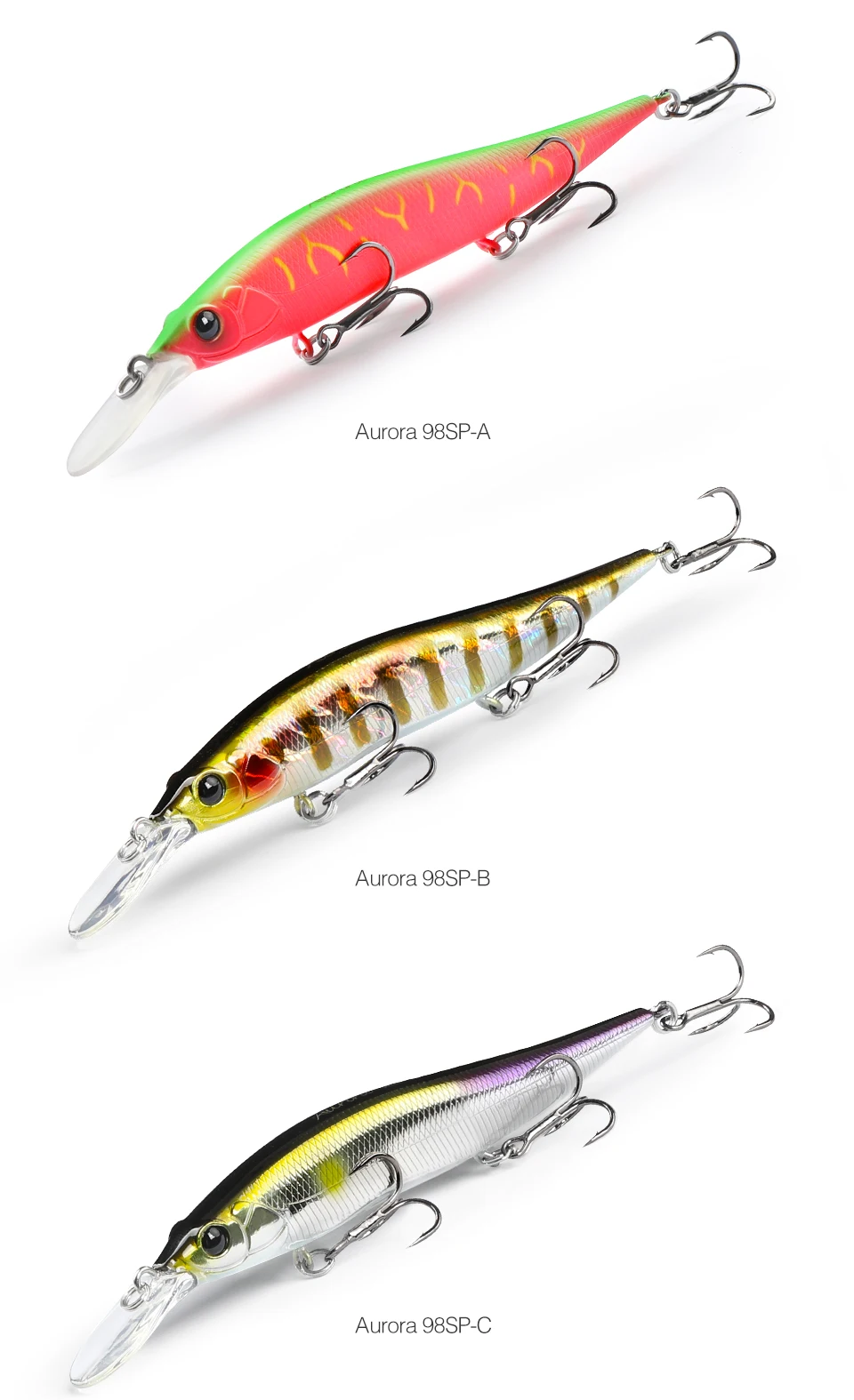 высокое качество, расцветка L- двуцветная (кислота) для пасмурной погоды, мутной воды, G- натуральная расцветка для солнечной погоды. Заглубление соответствует заявленному 2.2м, зависает в толще воды, наклон приманки 30-40градусов. При твиче двигается резко по сторонам, на равномерной проводке имеет высокочастотную игру, в меру шумный. Ловил им с лодку, закидывал к берегу поперёк течения, сильные одиночные или двойные удары с небольшой паузой. При проводке имеет достаточно сильное сопротивление, спиннинг до 21 грамма справляется. Рекомендую данную модель воблера от TSU. Добавлю, vision one teen 110 более шумный игра схоже, но Aurora 98 более резвый.
