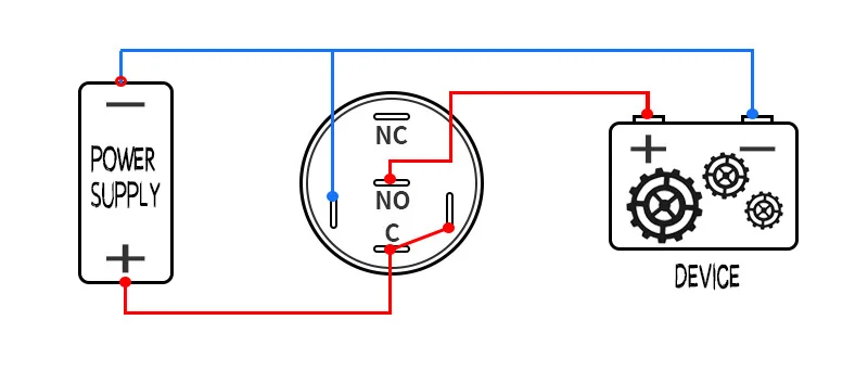 (1).Connect " NO " and " C " : The circuit is alway open unless press the button.