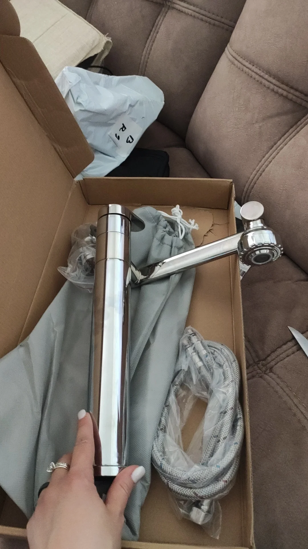 Смеситель пришел очень быстро,это рекорд доставки.На вид всё отлично, тяжолый, хорошо упакован.Вызвала мастера на неделе поменяет, и цвет подошел идеально.Спасибо,установят добавлю фотографии.