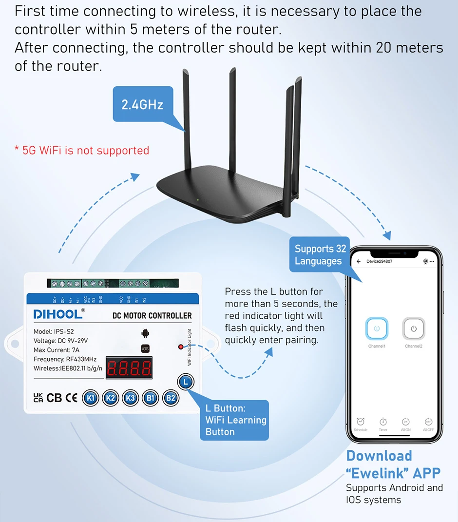 - WIFI controller:controller box+Remote control+manual control cable+power adapter