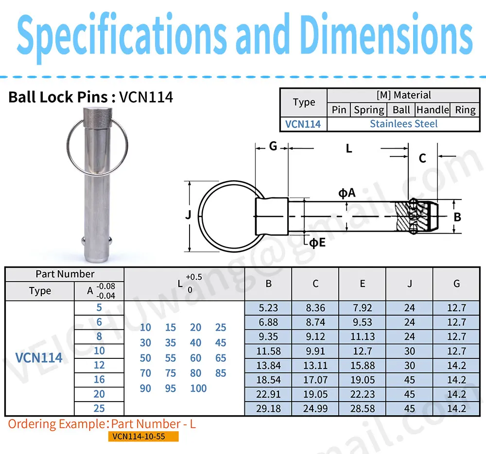 VCN114 Spring Type All Stainless Steel Ball Lock Pins With Pull Ring For...