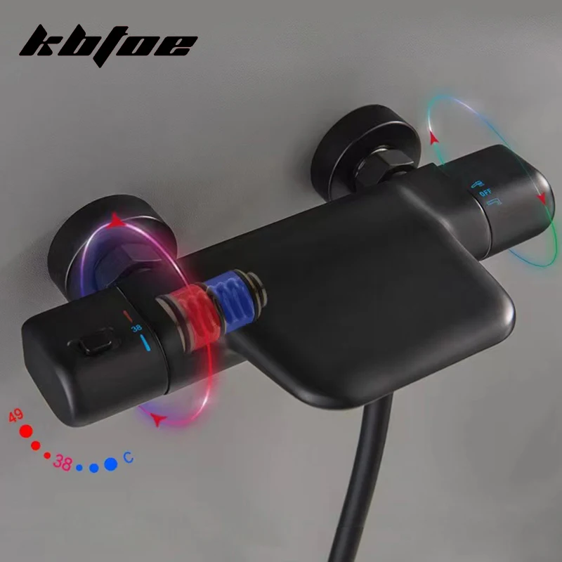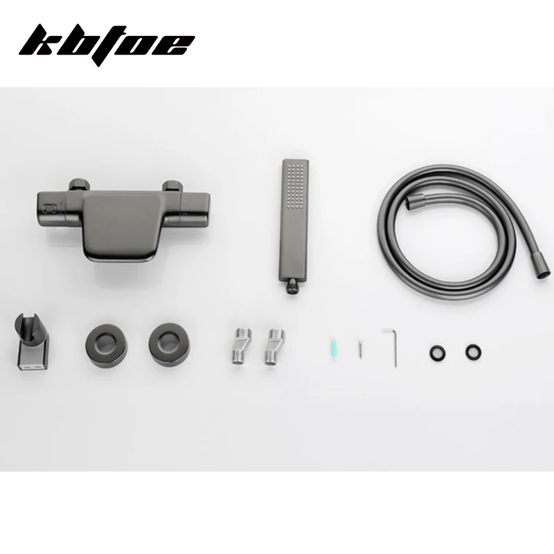 Термостатический смеситель для душа, латунный кран серого цвета для ванны, «Водопад», набор для душа