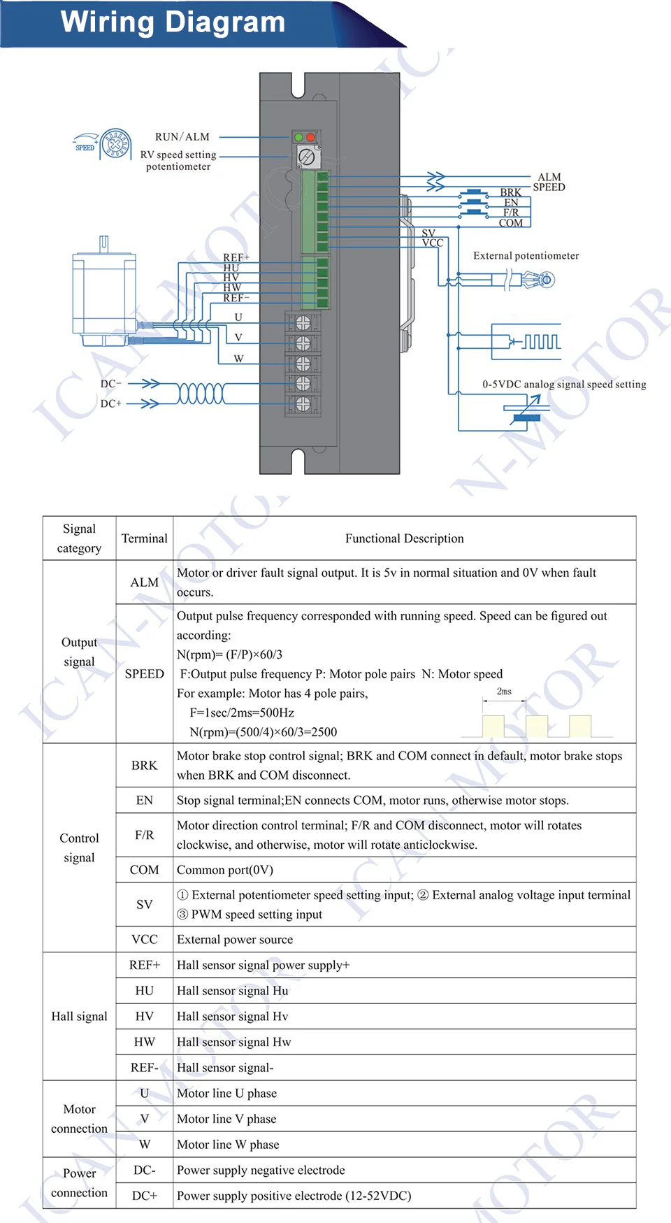 Обратите внимание: этот драйвер подходит для двигателей BLDC с датчиком Холла. Перед размещением заказа убедитесь, что ваш двигатель имеет 8 проводов (3 провода для двигателя, 5 проводов для датчика Холла)!