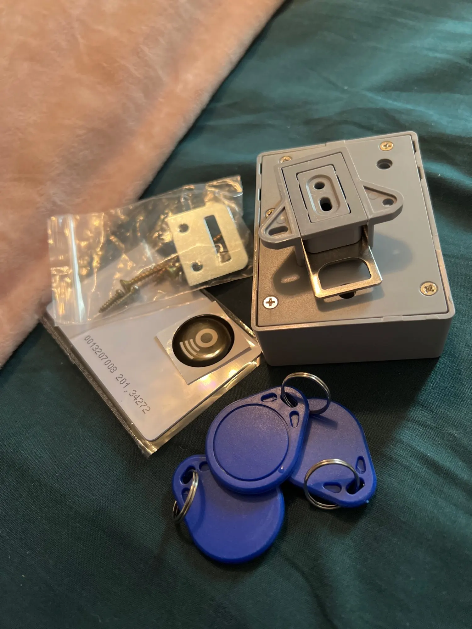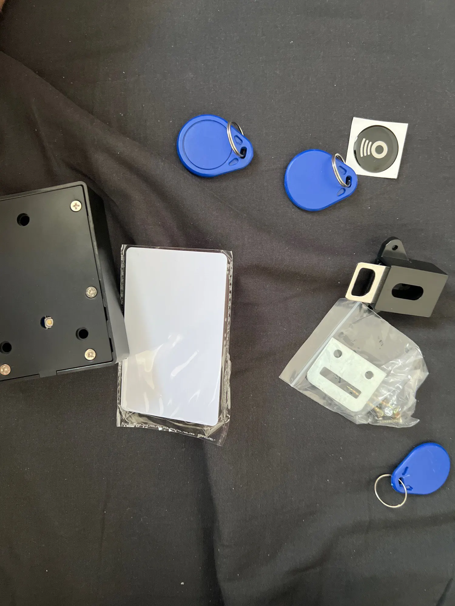 В Одессу пришло быстро , замок работает отлично, есть батарейки и от юсб, есть карточка и три брелка, всё отлично срабатывает, даже через толстую доску, поставлю посмотрим пока все устраивает, советую продавца