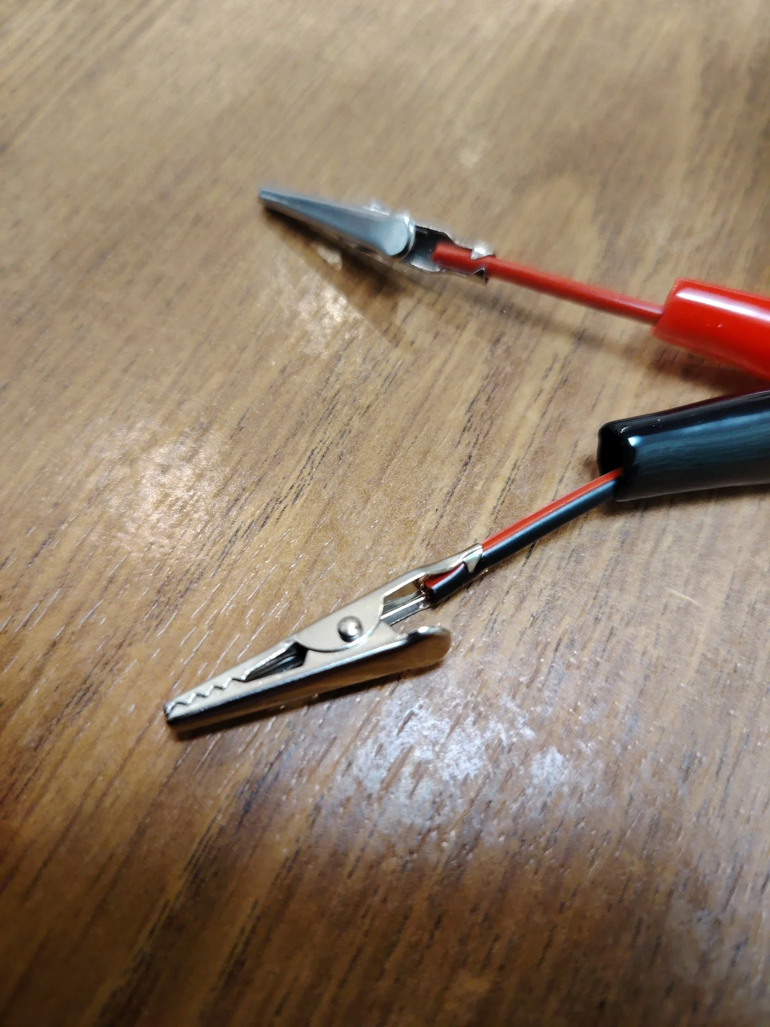 После получения рекомендую переделать "под себя". Игрушечные провода с "детским" сечением, но детям такие игрушки нельзя давать. Не исключено поражение электрическим током. Контакты (разъёмы) сделаны плохо, лишь бы доехали до покупателя, никаких намёков на лужение или пайку, на этом и всё. С таким же успехом можно просто заказать пару крокодилов...