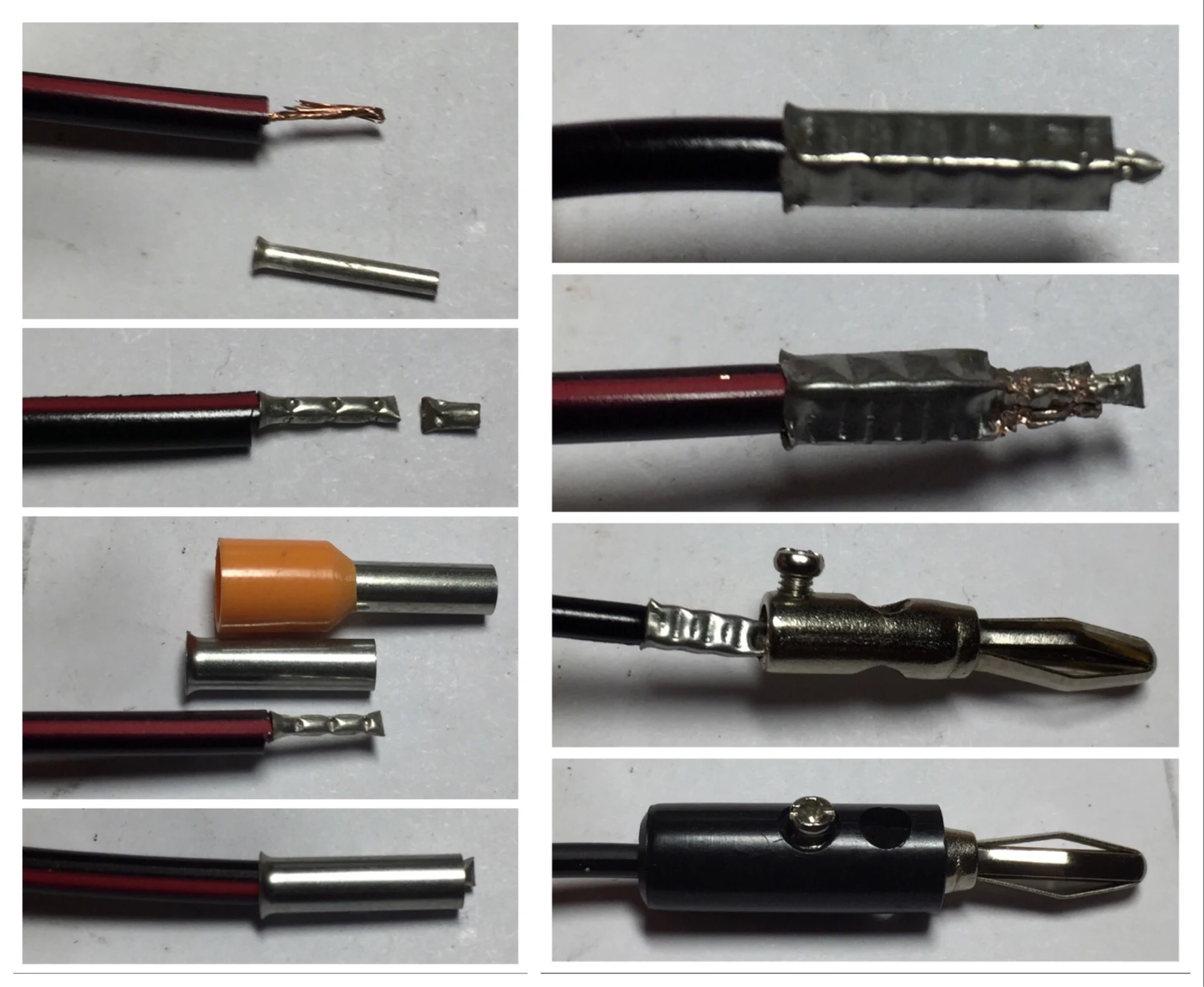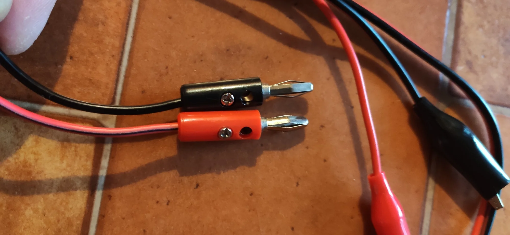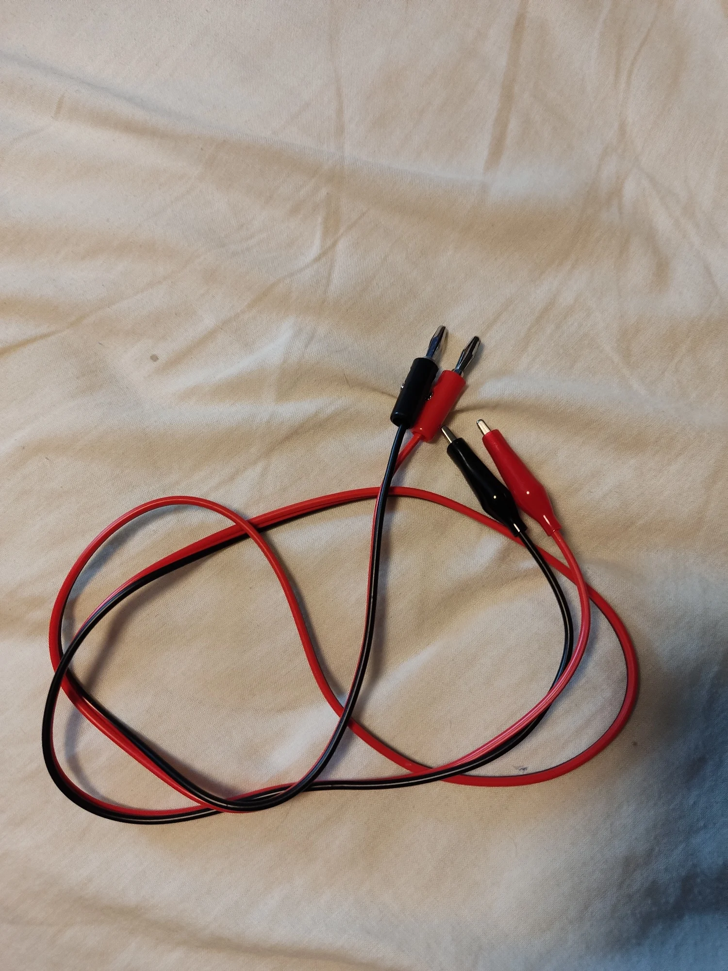 доставка долгая, пришли целые, с одной стороны разъемы бананы, с другой стороны крокодилы. Провода тонкие 0.5 примерно, зажаты в бананах через изоляцию, желательно обпаять концы проводов. Звезду снял за очень тонкие провода, а так, хорошие провода, если ток в цепи не больше 1 Ампера, при 2 амперах, есть просадка на проводах и соединениях.