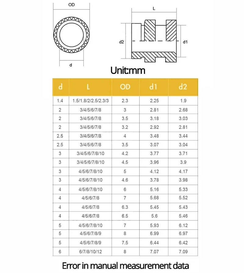 M2M2.5M3M4M5M6 Brass Hot Melt Insert Knurled Nut Thread Heat Molding SL-type...