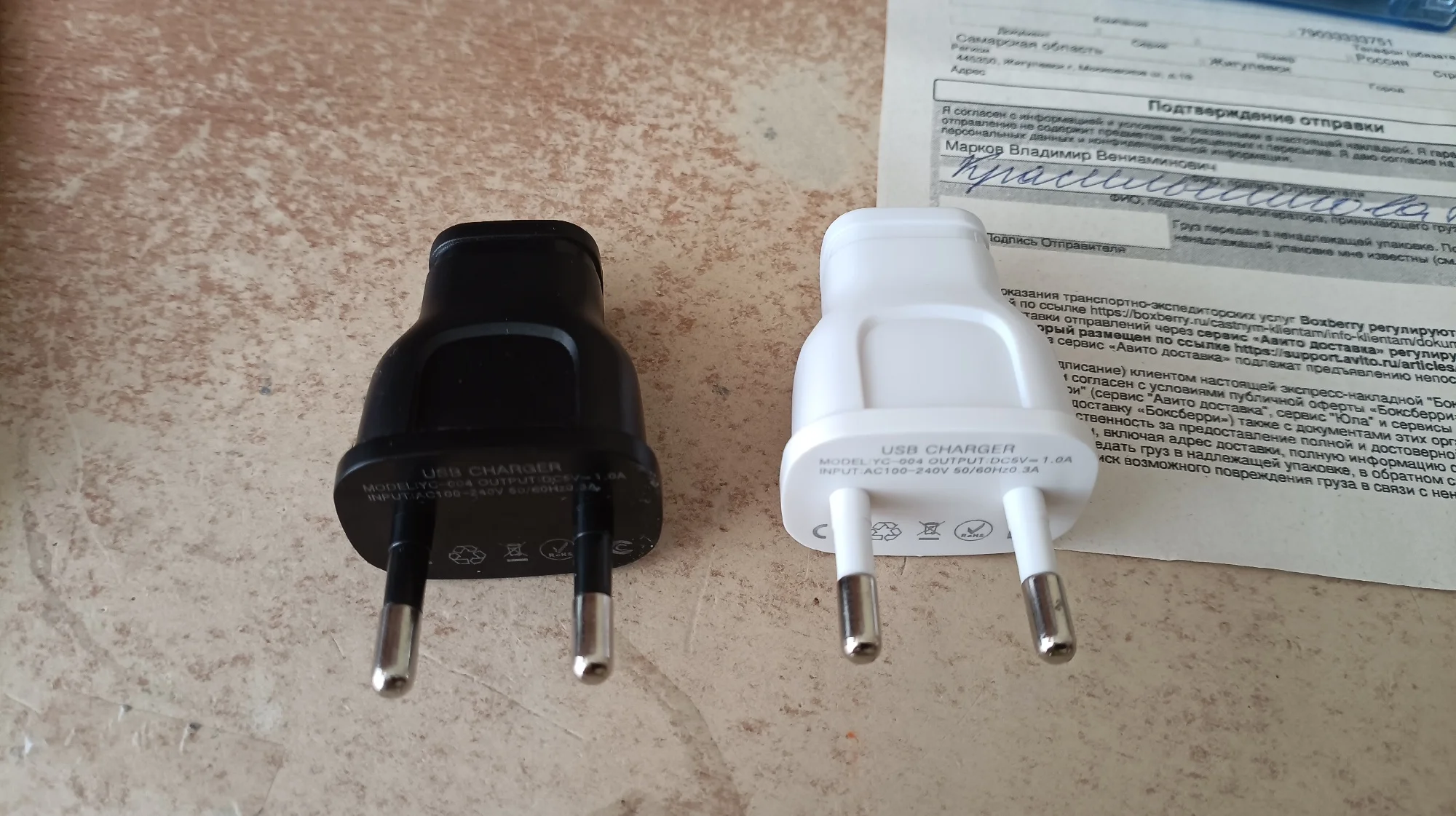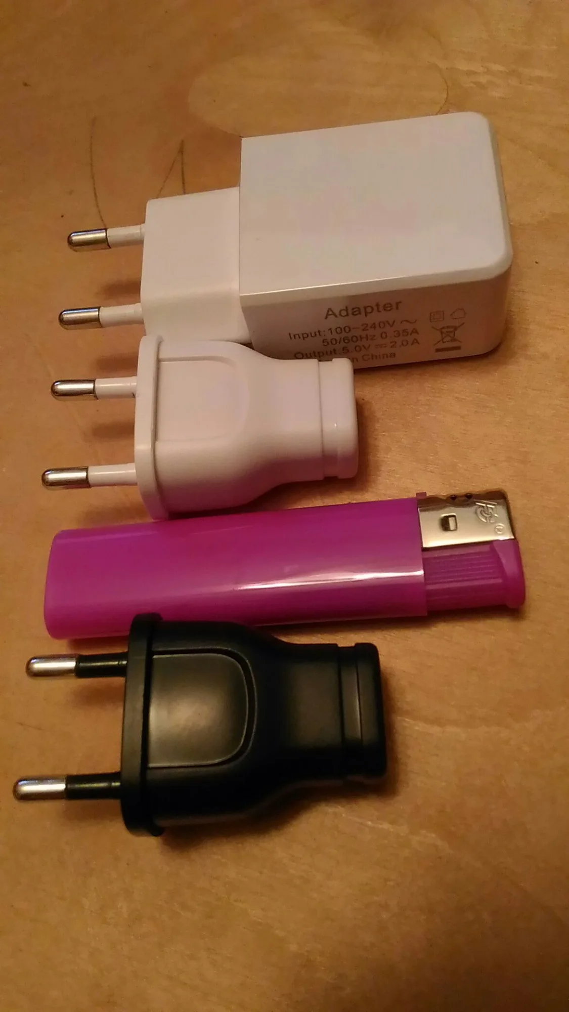 очень понравились зарядки. действительно вытягивают 1А, да есть пульсации на больших токах, но не критичные, до 100мВ. защита от КЗ есть, так же при достижении тока в 1А напряжение отключается. Фото в сравнении с обычной вилкой