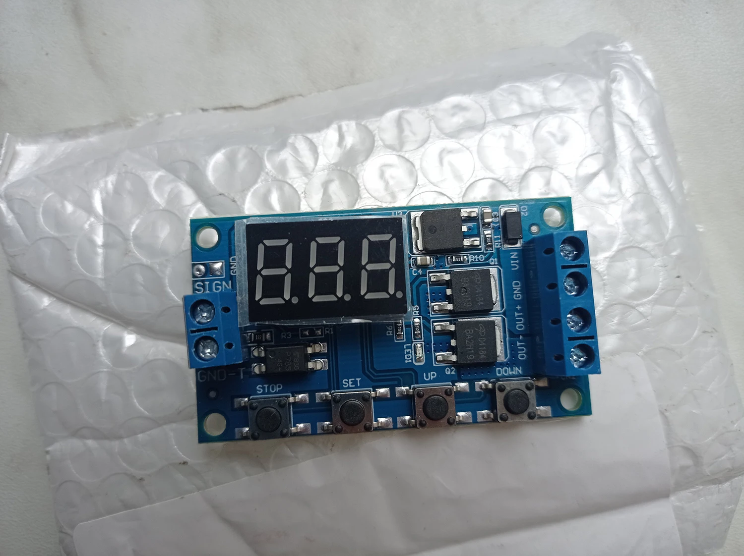 Доставка не торопилась, но пришло всё целое. Упаковано в пупырчатый пакет. Таймер работает в соответствии с программами. Разобраться не сложно, да и в интернете можно найти мануал на русском. Радует наличие триггерного выхода. Плюсом конечно я являются мосфеты, а не реле как в других моделях. Силовые ключи AOD4184 Рассчитанный на 6.5А каждый. Т.к они включены параллельно, предел выходной мощности 13А, а не 15(как заявлено). В идеале больше 8-10А не нагружать во избежании перегрева. Так же в сами мосфеты внутри шунтированы диодом (Source-Drain). Можно подключать индуктивную нагрузку (реле, моторы). Защитный диод от переполюсовки на прочность лучше не проверять. В целом хороший таймер для различных нужд.RU A. 25 марта 2022