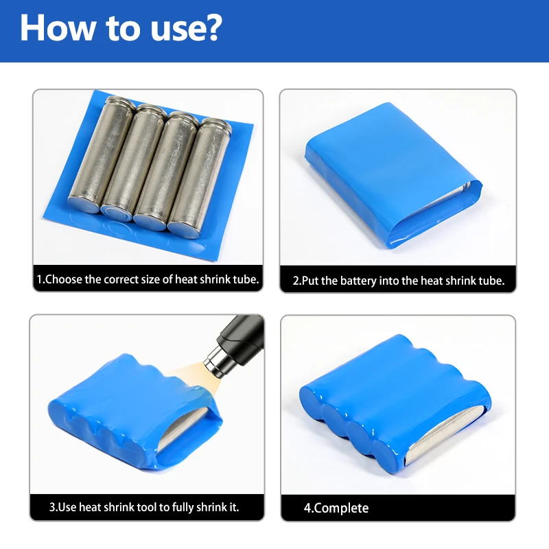 18650 Lipo Батарея ПВХ Термоусадочная трубка Ширина 17 мм ~ 80 мм Изолированная пленка Литиевый корпус Кабельный рукав Синий