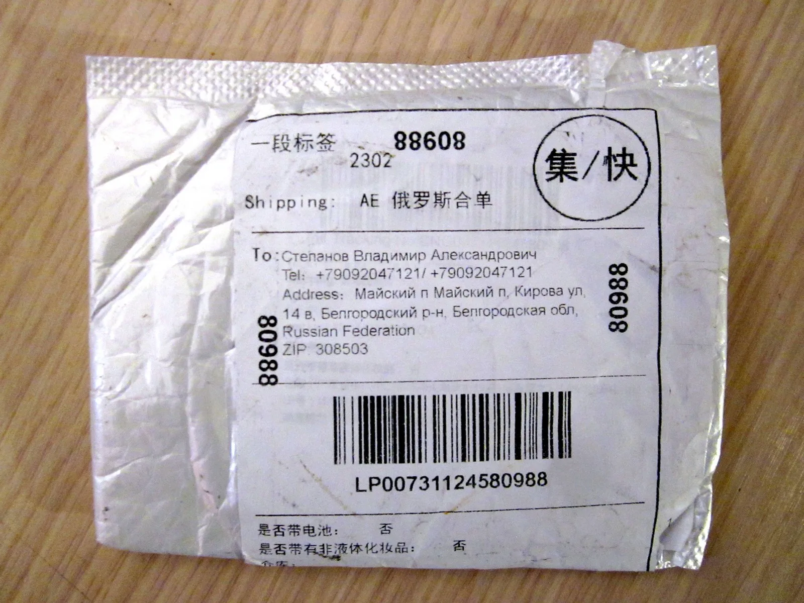 Спасибо Вам, китайский друг, за полученный мною заказ на почте утром. Заказ я получил без повреждений и он соответствует описанию. Олег