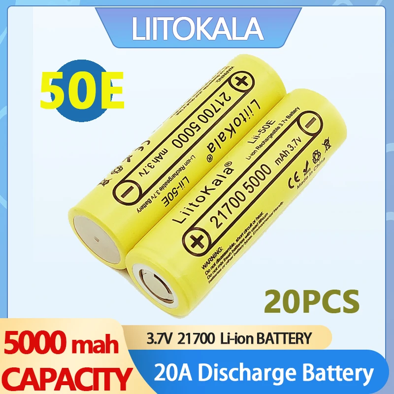 20 шт. LiitoKala Lii-40A/Lii-50E 21700 перезаряжаемая батарея 4000/5000 мАч