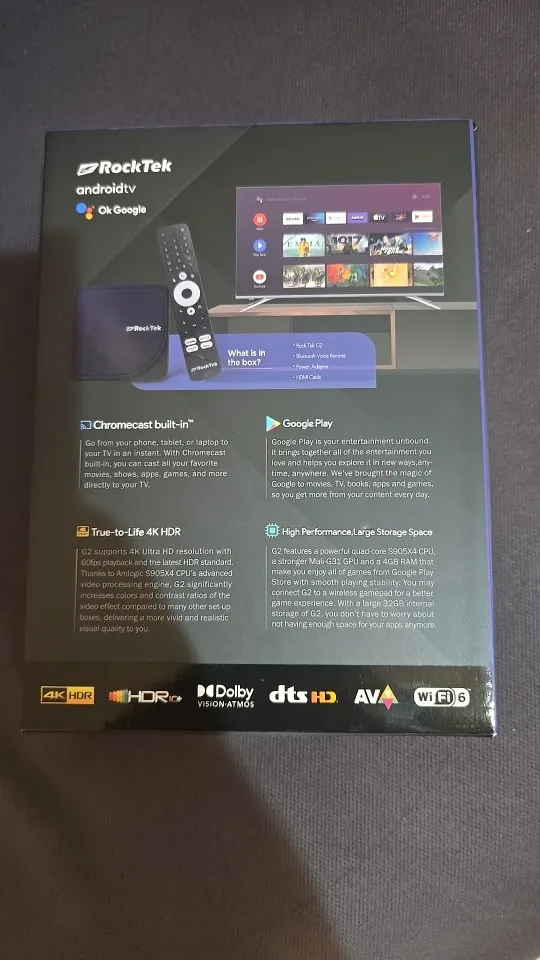 RockTek G2 4K Android TV 11 ATV Stream TV Box Netflix Google Certified Amlogic...