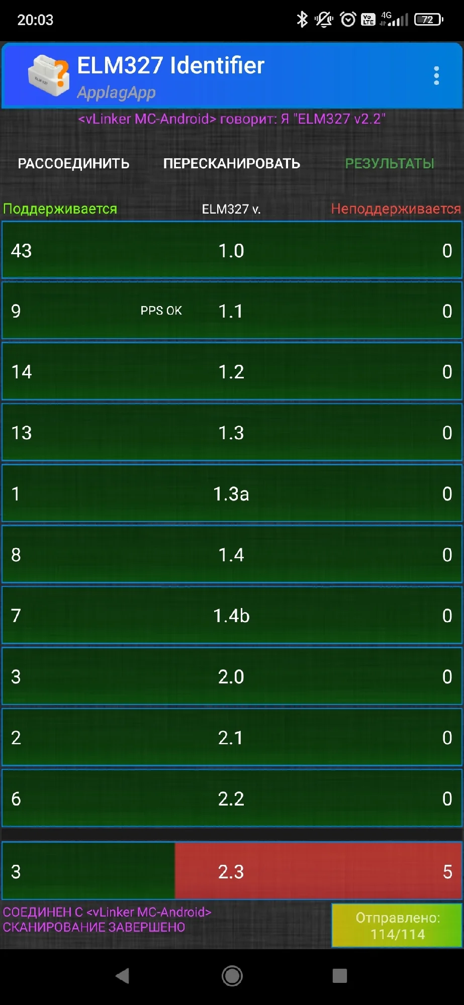 - Версии программного обеспечения:Vgate vLinker ELM327 V2.2