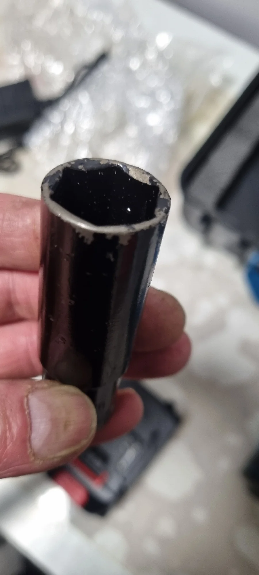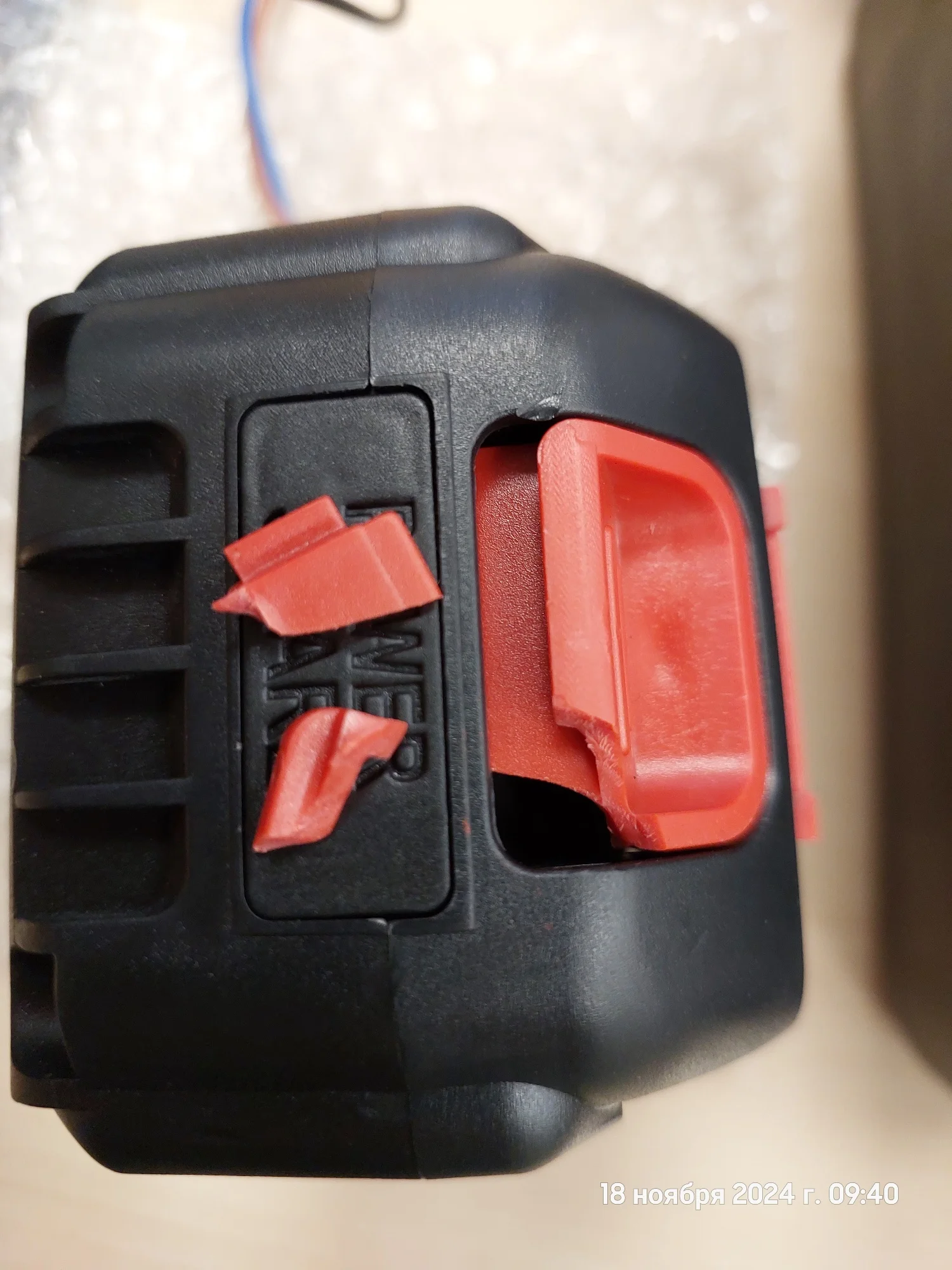Аккумулятор намного меньше заявленой емкости. Эти акб скорее всего подойдут для шуруповерта, а не для гайковерта. Ещё выяснилось, что головки не ударные из черного каленого металла, а просто окрашенные черной краской мягкий металл. При откручивании гаек на Nissan x-trail t31 открутил всего 3 из 5. И это при заявленном моменте 1200? То есть получается Аккумулятор меньше заявленного, головки из мягкого металла, и момент далеко не 1200. По факту это простой шуруповерт Замерил внутреннее сопротивление - 10мом на пару параллельно установленных банок, а это всего по 20мом. Вот головка, краска сразу отлетела. Это обычные головки окрашенные черной краской, а не ударные. Достал второй аккумулятор, у него разбитый корпус, но сам аккумулятор упакован хорошо и нигде нет осколков. То есть аккумулятор изначально битый упаковали. Это ещё очередной обман покупателя.Fedorov M. 9 апреля 2025