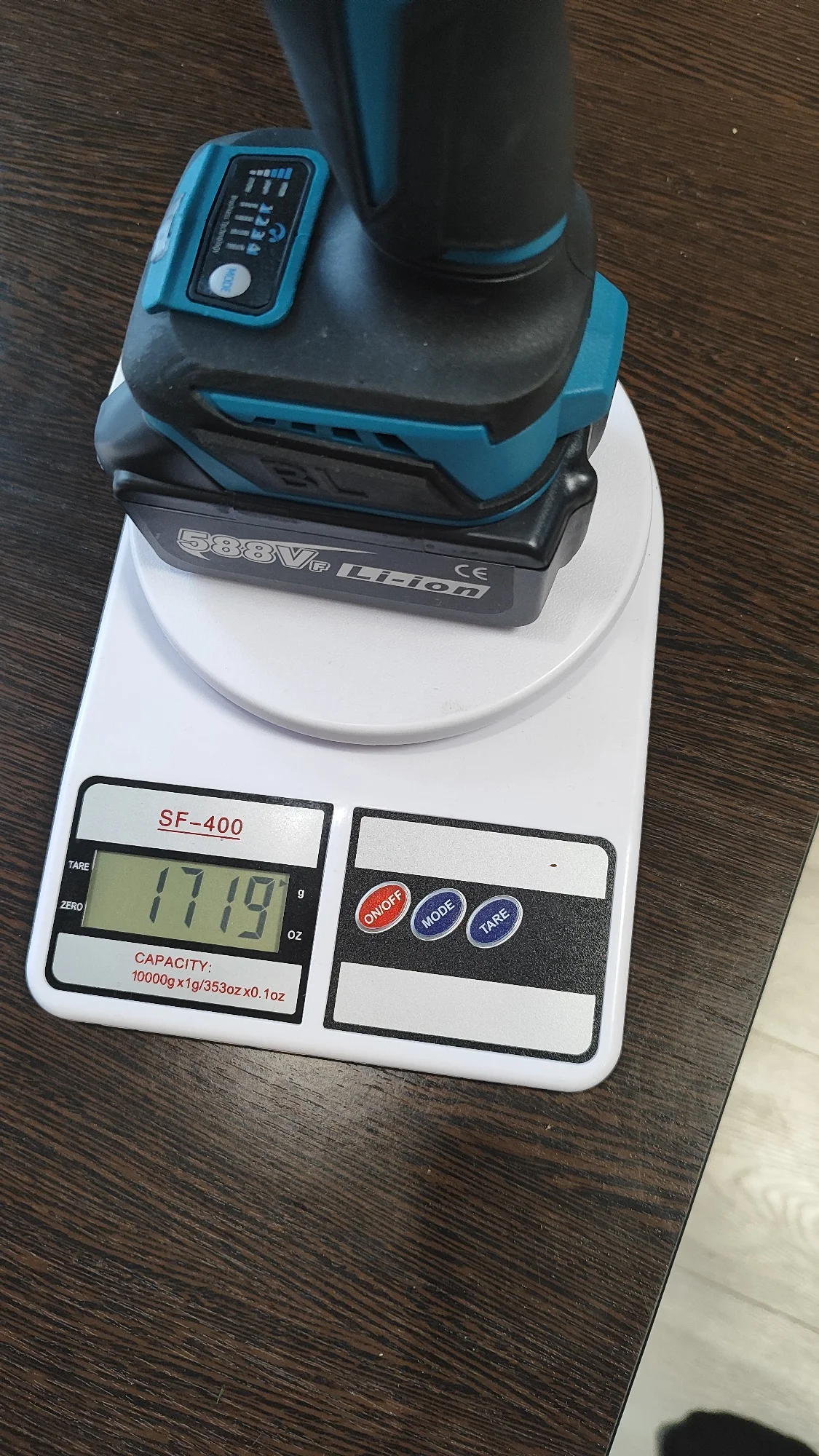 товар получил один из акумуляторов сломана зашелка заводской брак надеюсь продавец вышлет другой акум. крутит хорошо акумы вроде нормальные не вскрывал вес 500 грам вес гайковерта с акумом 1700гр. головки в комплекте просто крашеные черной краской не являются ударными, акум от макиты не пробовал так ка нет в наличии но гайки колесные открутил.