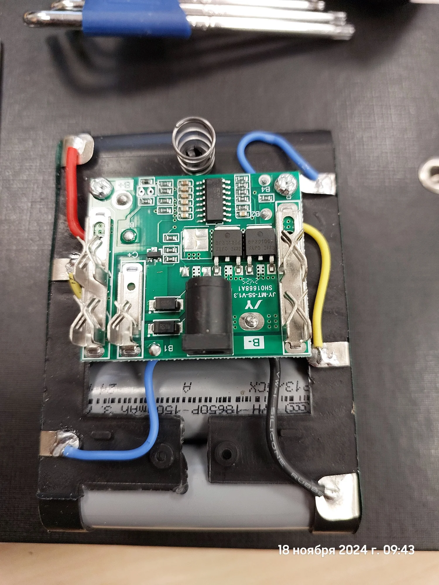 Учитывая за сколько я умудрился урвать этот набор, 3600 с копейками, в общем я без особых претензий, но глядя сколько сейчас за него хотят, решил написать отзыв для других. Сам гайковет не плох, у легковых тачек гайки откручивал не сильно напрягаясь, даже у трактора сдюжил, головку правда поискать пришлось. Трактор правда был тоже китайский.... Единственное я не понял, почему на 1й скорости, по факту скорость вращения самая высокая, а на 4й самая медленная. То-ли перепутаны, то-ли так задумано....... Коробка не шибко крепкая, но по сути больше из за неё и брал весь комплект. Не люблю когда инструмент валяется как попало. Хотя внутри тоже все не особо исполнено, ложементы в уплотнителе не под весь комплект, в итоге головки летают там долбя друг друга и все вокруг. Головки пока вроде живые, но я ими пока и не работал, и их надёжность под сомнением, краска слетает просто от надевания на болт. Пока ехали все облупились друг об друга. А вот зарядка и аккумуляторы это просто ахтунг. Начну с зарядки, вес аж целых 92 грамма, о как! На корпусе заявлено 1,2А, по факту выдаёт кое как 0,5А. С аккумуляторами тоже интересно, один приехал с отбитой кнопкой, либо головки летающие по чемодану разбили, либо такой уже и отправили, так как аккумы помимо своих ложементов, ещё и в пупырку были завернуты. Индикатоа заряда на них нет никакого. В описании в одном месте указано, что ёмкость от 2 до 5 ампер/часов. Хороший разлет, могли бы и от 2 до 50 написать, 2 в эту вилку тоже проходит)) В другом месте в описании, они вообще указывают 22900мАh. Вот это уже больше похоже на их стиль... В общем сборка из 10 банок, по 5 спаренных. На самих банках указано, что они по 1500мАh, по факту замеры приложил, они и тут не смогли не соврать. Разряжал до 3 вольт, набрал в среднем около 2,5Ач, что на разряде, что на заряде... Разбирать сборку уже не стал, замерил внутренее сопротивление спаренных. Вышло в среднем 21-22миллиома на пару, если я ещё не совсем забыл уроки физики, то одна банка из пары получается 42-44 миллиома. Тобишь они не шибко то и высокотоковые. Надеюсь в БМС есть защита по температуре, фотку приложил, в схемотехнике БМС пока не шибко разбираюсь...