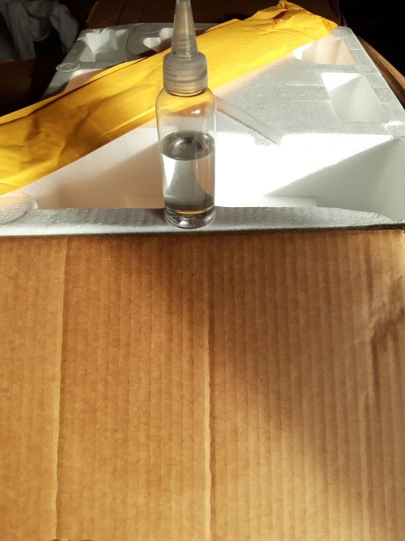 Вся коробка в масле, помятая, пластификатор весь вытек. Месяц шёл аппарат! Для экспресс доставки очень долго!