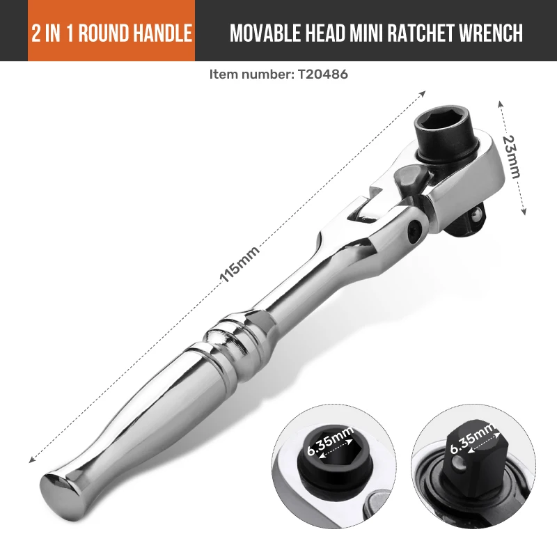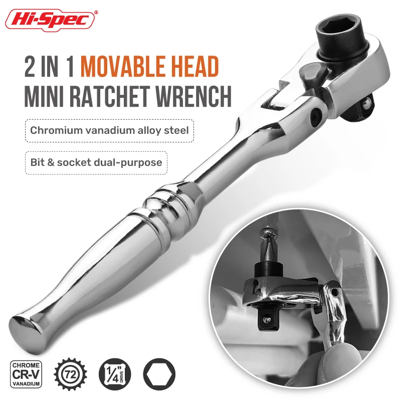 Hi-Spec 2-in-1 Mini Ratchet Wrench Movable Head Handle Double-Ended Socket...