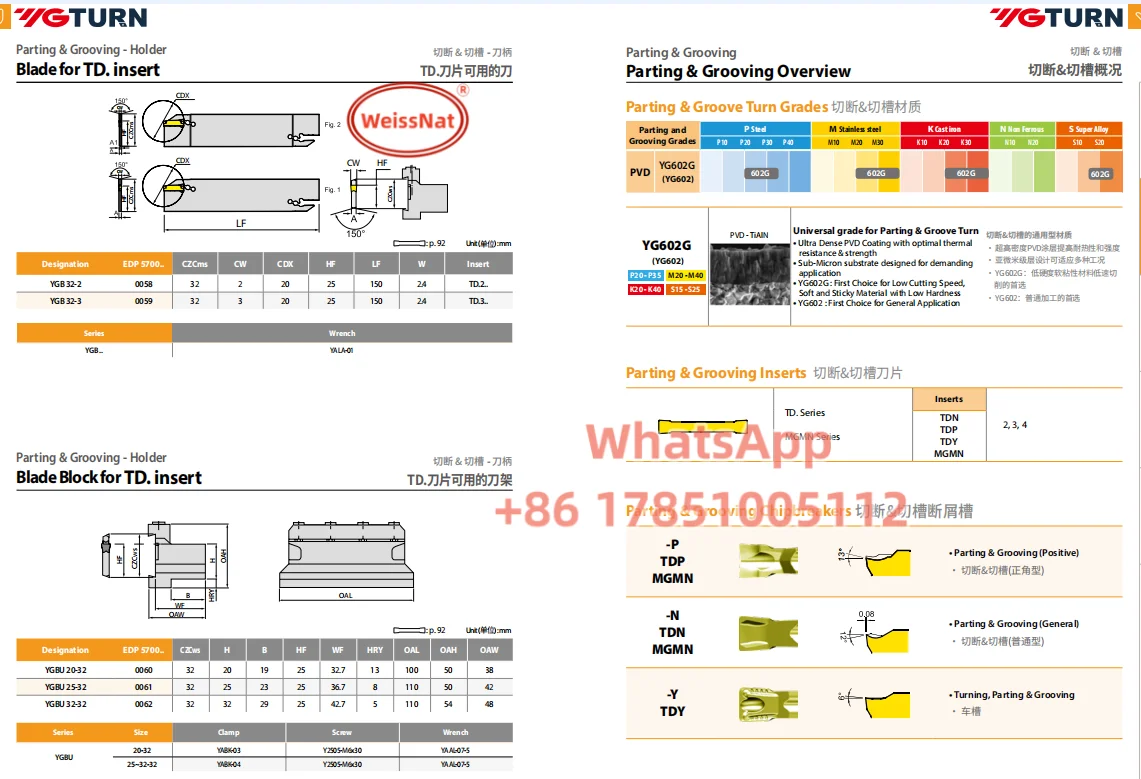 TDN2002 YG602/TDN3002 YG602/TDN4003 YG602 Korea YG-1 Grooving Carbide Insert ...