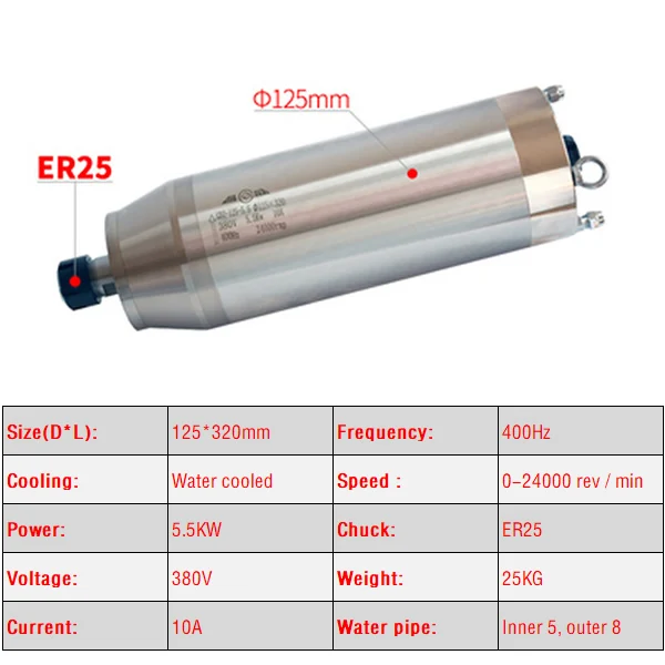 5.5KW ЧПУ шпиндель мотор 220V 380V с водяным охлаждением Фрезерный станок с ЧПУ ось Z вала 5500W 125 мм Диаметр шпинделя ER25 цанговый патрон