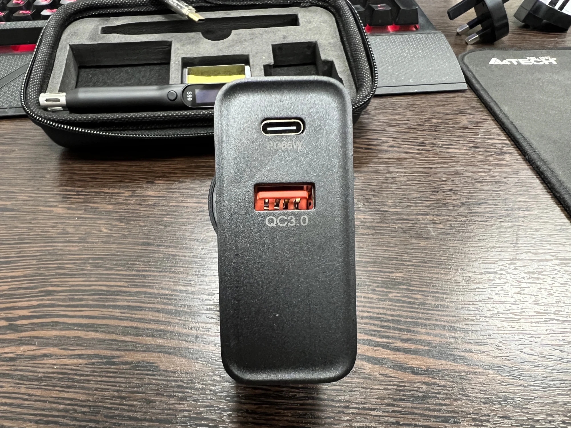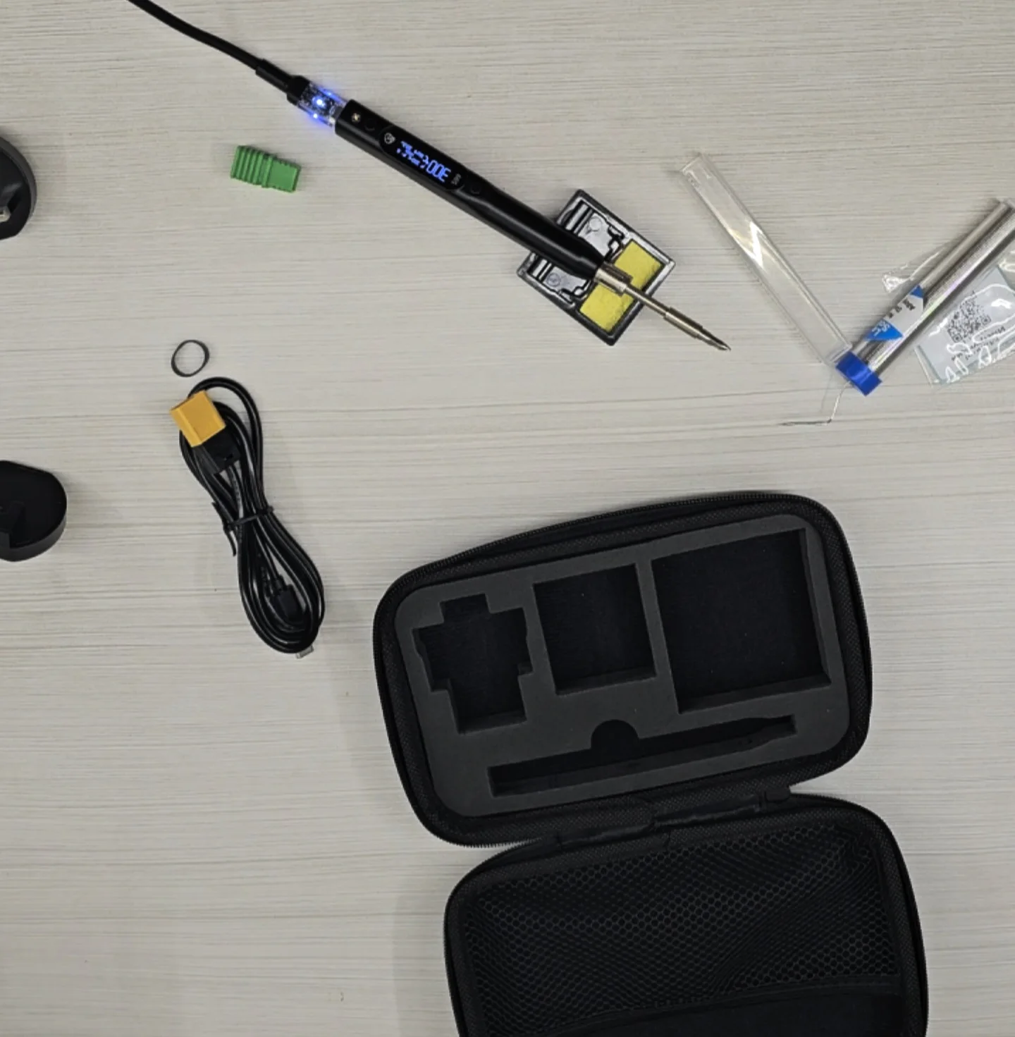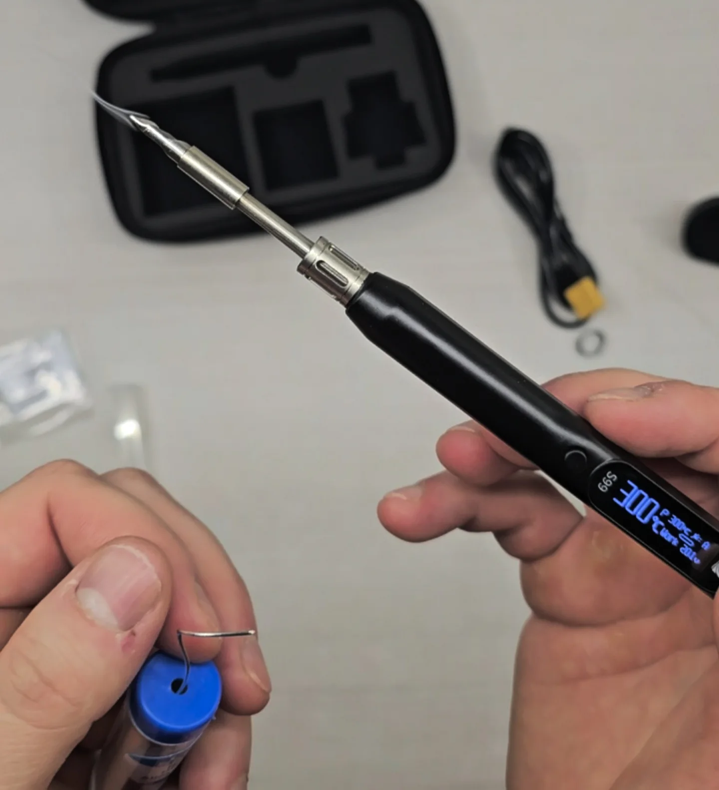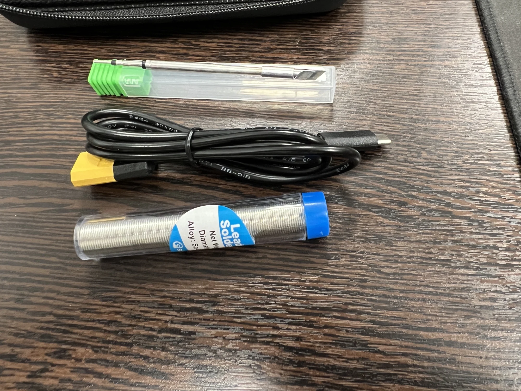 Пришёл гораздо быстрее указанного срока. Брал самый дорогой набор с четырьмя жалами и блоком питания. Пришло всё, что должно было прийти. Проверил сразу же, как пришёл домой: меню интуитивно понятное, разобрался за 5 минут; греется до рабочей температуры менее, чем за 10 секунд; паяет хорошо, хотя, я пока не занимаюсь электроникой и проверял на миллиметровых медных жилах (они оказались под рукой, сам паяльник покупал для работы, паять проводку в авто), полагаю, с тем, для чего он предназначен (электроника) справится без проблем. В комплекте не было флюса, поэтому первые впечатления от пайки немного смутили. Припой из комплекта содержит флюс, так что кое-как получилось спаять 2 провода. В комплекте также есть 2 кабеля. Один usb type-c/usb type-c, второй — usb type-c/какой-то неизвестный мне двухконтактный разъём. Назначение второго кабеля для меня осталось загадкой (возможно, он для подключения к лабораторным блокам питания, но это просто моя догадка. Может, чуть позже загуглю его название, разберусь). Также положили 3 переходника. Приятно, но хотелось бы, чтобы ложемент под блок питания в кейсе был с учётом присоединённого переходника, чтобы не нужно было каждый раз его подключать и отключать до и после работы. В моём наборе это место под блок питания просто квадратной формы и блок питания туда не влазит, если к нему присоединён переходник для включения в сеть. Сам блок питания неплох, но не внушает доверия, так как искрит при включении в сеть. В дорогих и качественных блоках питания такой особенности нет. Провод type-c/type-c довольно твёрдый, так что стаскивает паяльник с подставки, которая идёт в комплекте, приходится искать для него нужное положение. Сам паяльник довольно хорош. Собран, вроде, неплохо, никаких люфтов, скрипов, щелей или чего-то подобного нет. Правда, материал корпуса не очень приятен тактильно. Ощущение какого-то дешёвого пластика (возможно, выбор этот материала обусловлен термостойкостью, но хотелось бы, конечно, что-то поприятнее. Может, попробую докупить на него что-то вроде чехла из силикона или другого подобного, более приятного материала). Форма корпуса хорошая, эргономичная. Держать приятно, хотя для моей руки он немного мал, что, кстати, тоже меня удивило, так как думал, что он будет крупнее. На самом деле он размером с обычную шариковую авторучку, что немного ломает мозг, так как в нём может быть до 150 ватт. К слову, про его мощность. Все комплектные жала (в моём случае 4шт) имеют сопротивление 5,5 ом, что даёт ему мощность в 75 ватт. Стандартный блок питания из комплекта имеет мощность в 65 ватт. Для получения заявленных 150 ватт нужно докупать соответствующий блок питания и/или повербанк и жала с сопротивлением в 2,5 ома. В комплекте этого нет, на странице официального магазина я этого не нашёл (возможно, плохо искал). В принципе не совсем понимаю, как искать жала с нужным мне сопротивлением, так как почти нигде на страницах товара не указано сопротивление жала. К слову, в инструкции написано, что рекомендуется использовать только блок питания и жала компании sequre. Хотелось бы в таком случае иметь возможность купить продукцию, которая способна обеспечить заявленные характеристики. Хороший блок питания на 150+ ватт будет стоит больше, чем весь набор, который мне приехал (я заплатил примерно 80$). Повербанк, который будет способен обеспечить минимум 120 в