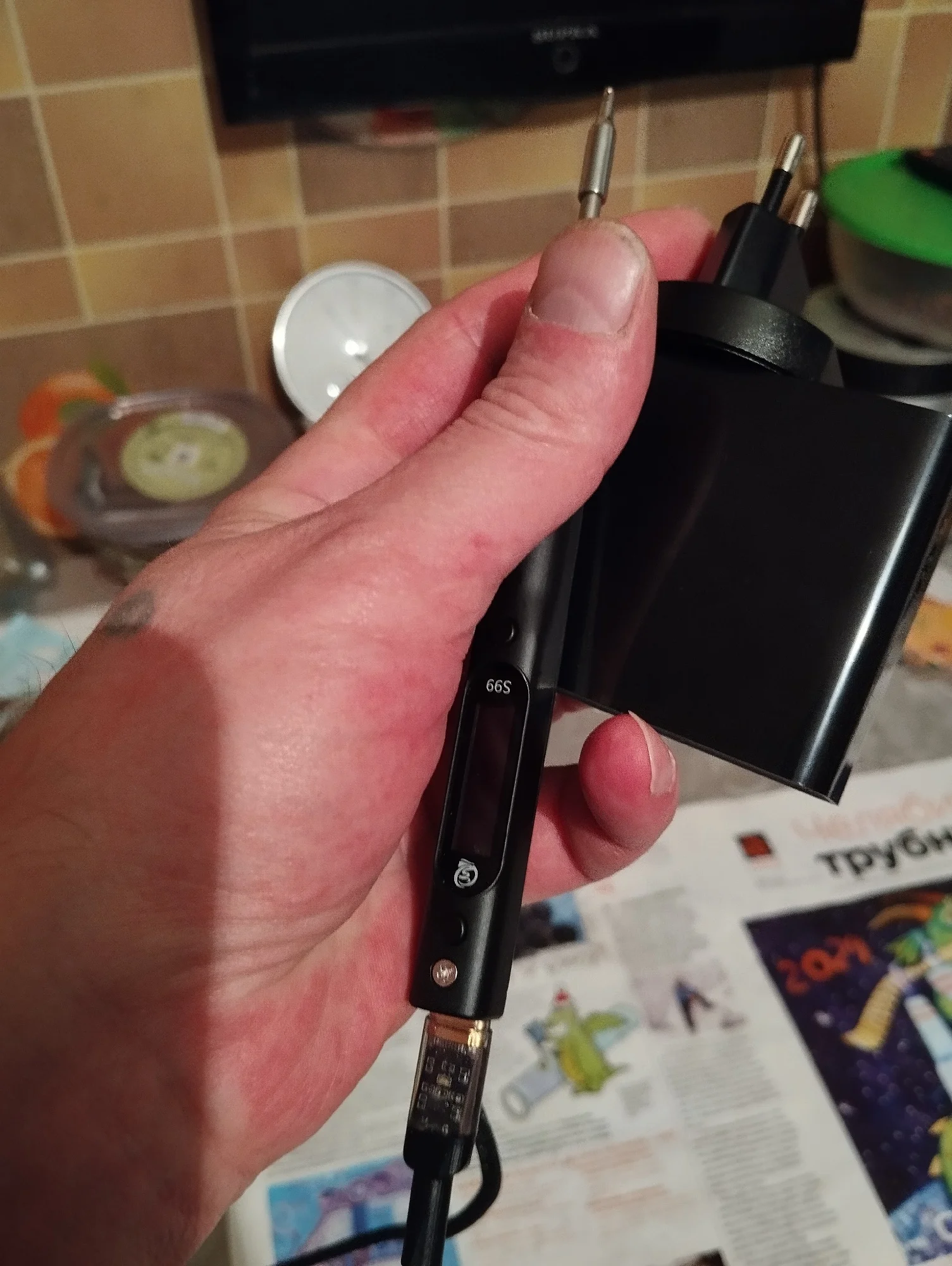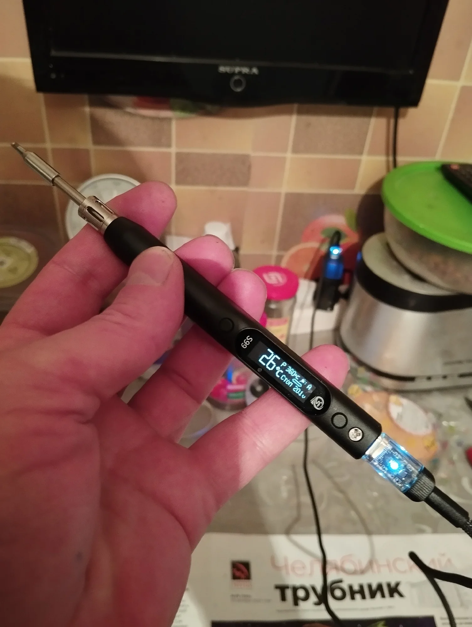 Паяльник супер компактный и очень мощный, по размеру меньше маркера. Управление удобное, одним пальцем. Нагрев очень быстрый, несколько секунд. Питание подавал с быстрой зарядки - при 21В потребление максимальное было около 65Вт, что очень неплохо для такого малыша. Жало в комплекте не очень удобное - заказал сразу несколько других видов, тип жал C245. Идеальный вариант для выездного ремонта, возможно питание от повербанка с С-разьемом. Покупкой очень доволен, до этого использовал профессиональные паяльные станции, но они очень громоздки, этот вариант самый компактный на рынке. Помимо паяльника необходимо докупить кабель питания (желательно полностью силиконовый) USB Type C - Type C и источник питания, в моём случае это быстрая ган зарядка на 65Вт (не покупайте слишком дешёвые, настоящие стоят от 1500 руб) . Всем ароматного запаха канифоли.Vladimir s. 12 апреля 2024