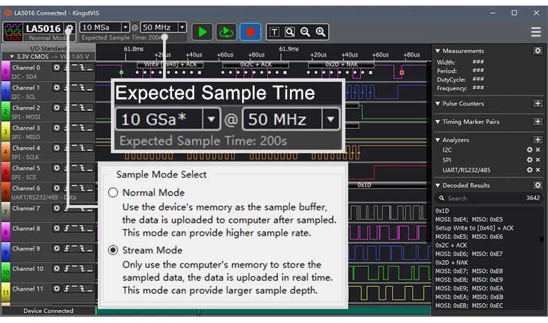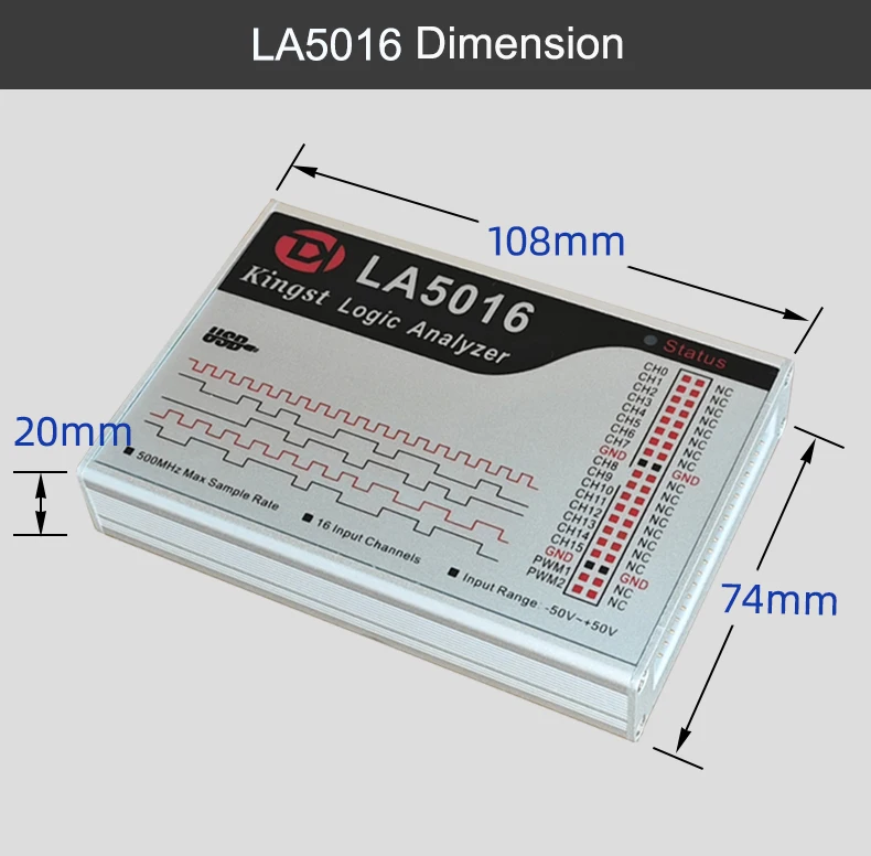 Kingst LA5016 USB логический анализатор 500 м Максимальная частота выборки, 16...