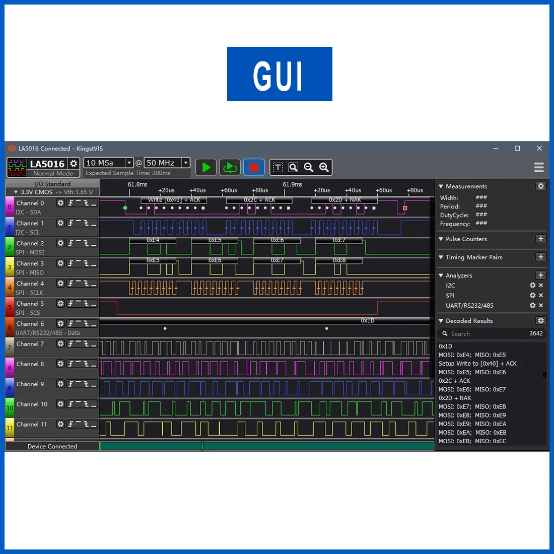 Kingst LA5016 USB логический анализатор 16 каналов