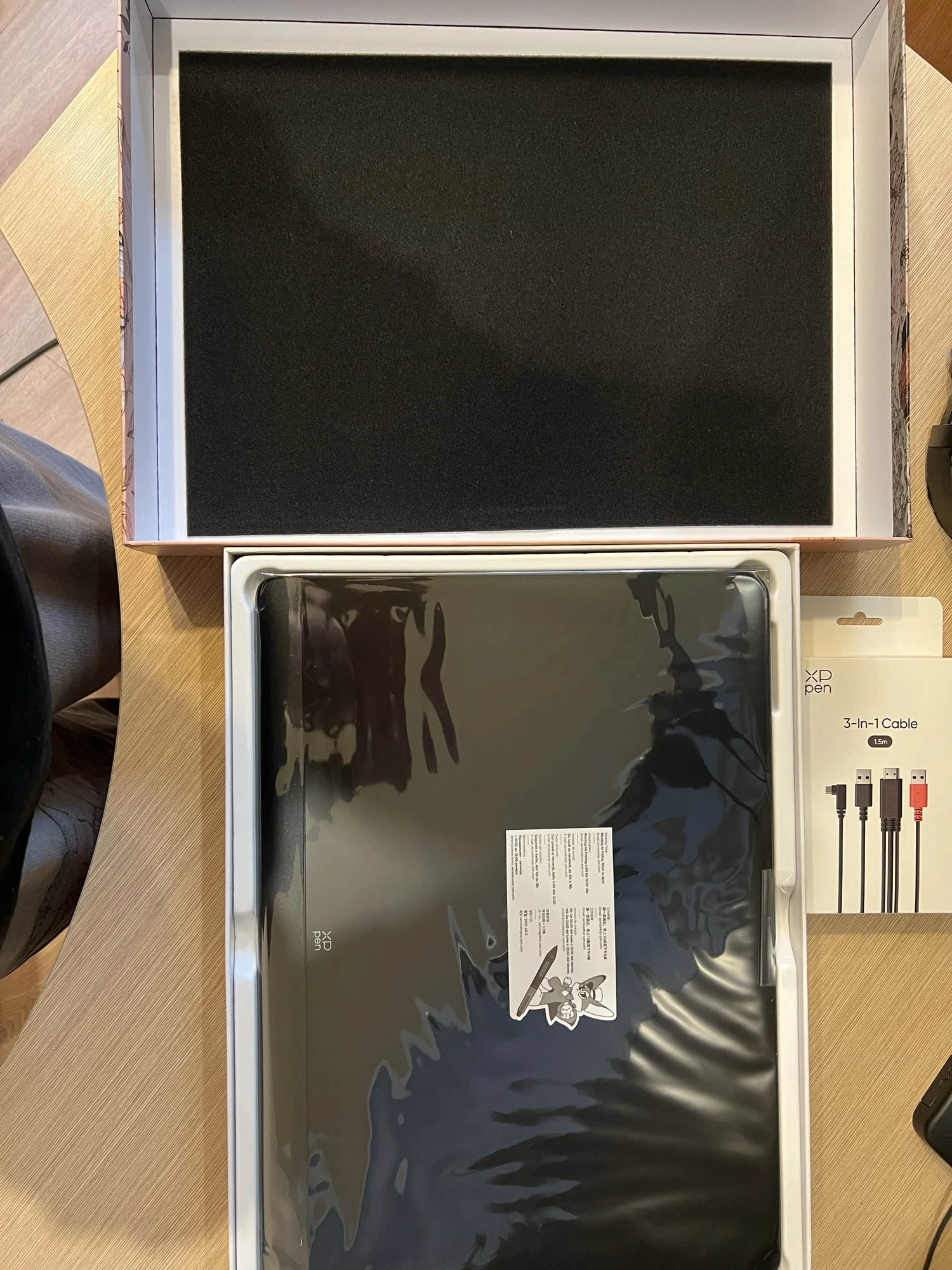 Приехал за 14 дней! Упаковка хорошая, положили провод 3 в 1 (и это хорошо, потому что по Type-С планшет отказался работать, но возможно я в чем-то не разобрался). Сам планшет очень приятный на ощупь, рабочая область большая, цветопередача отличная. Это мой первый экранник, до этого 5 лет работал на айпаде. Прибываю в полном восторге. Продавцу большое спасибо 🥰