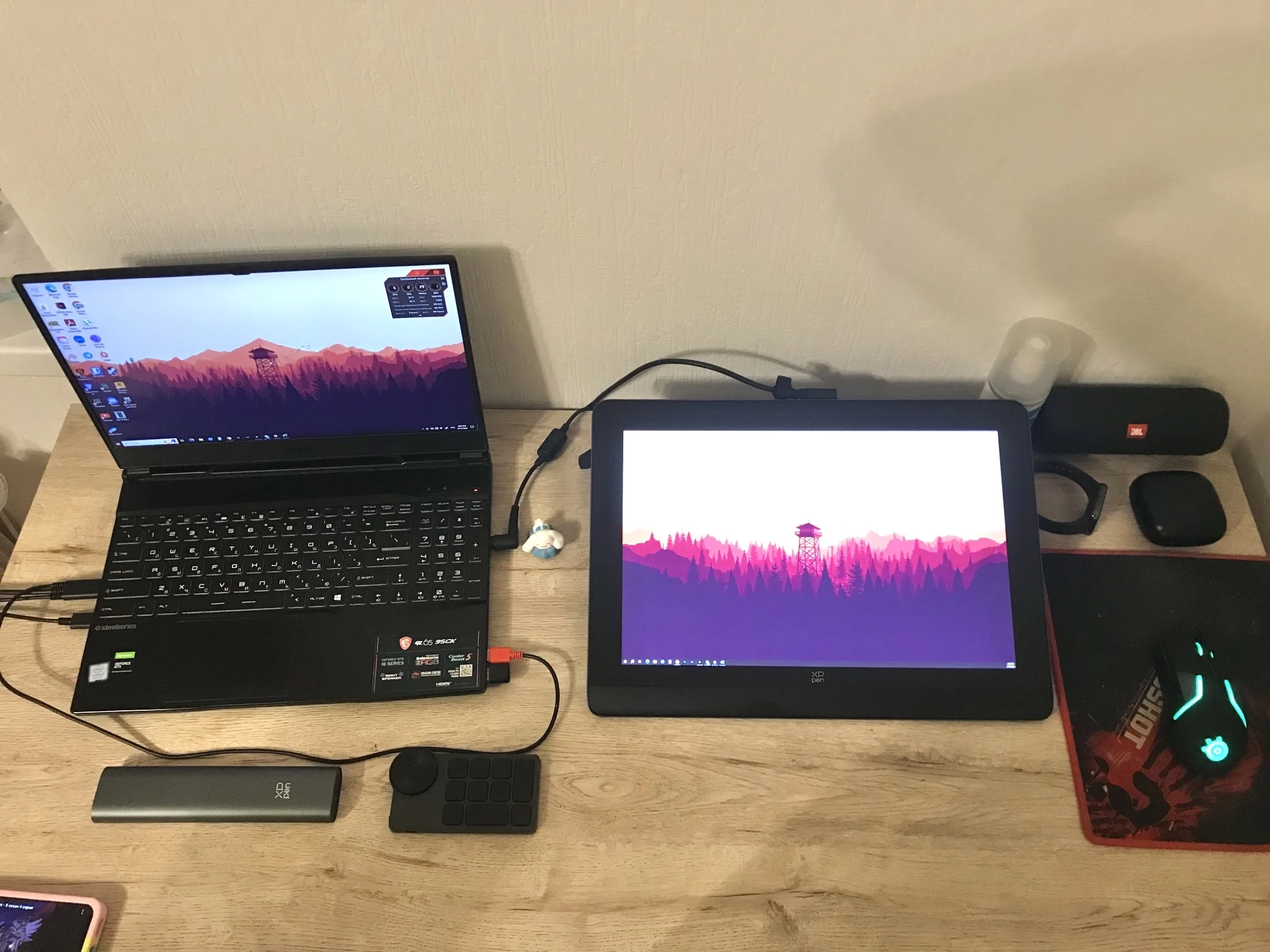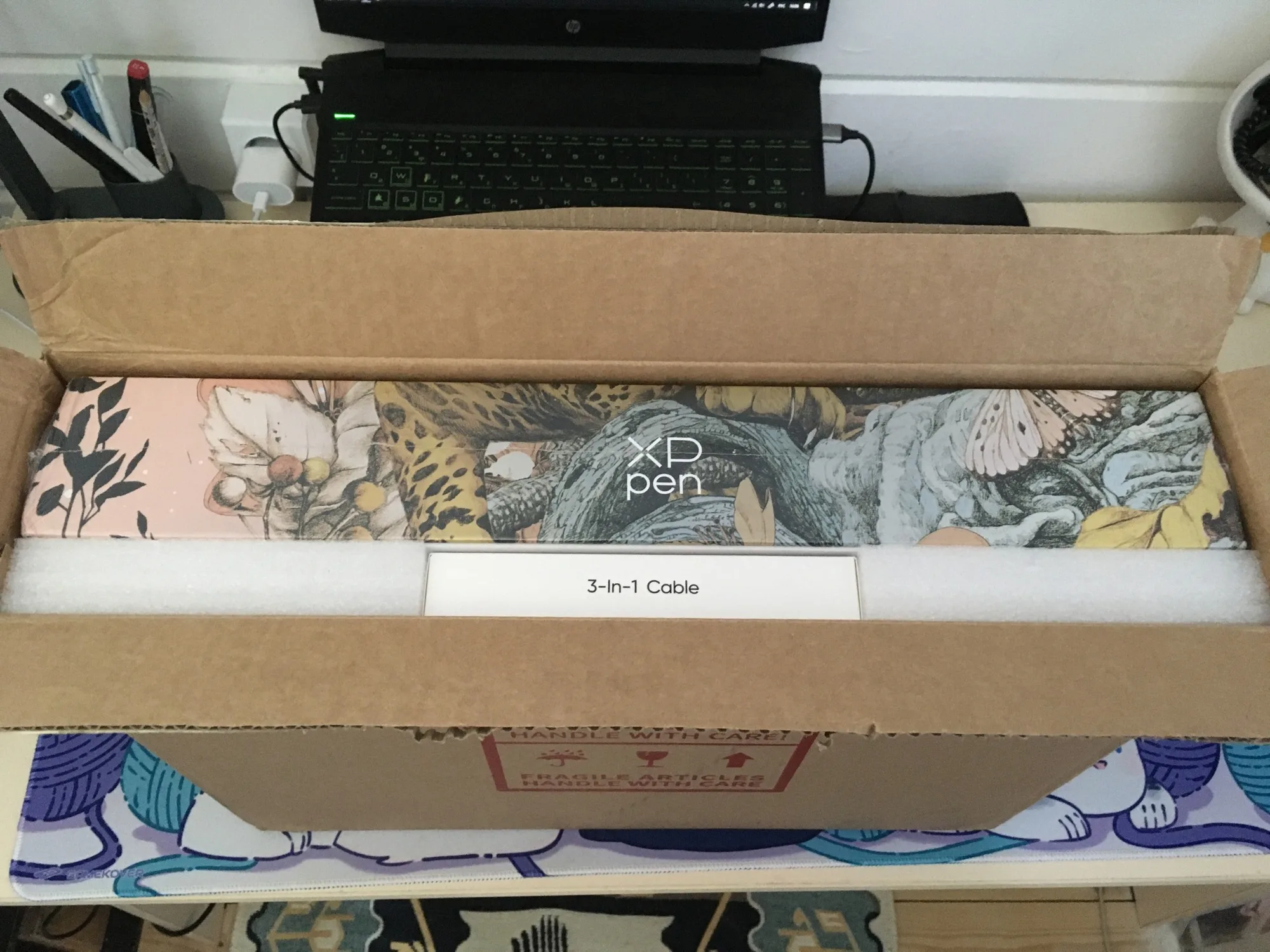 Товар приехал в идеальном состоянии. В комплекте есть провод 3в1. И это плюс, потому что мой ноут подключает ГФ, только через него. Пользуюсь примерно месяц. Всё очень нравится, не считая тех фактов, что пару раз по каким-то причинам слетала калибровка. И были моменты, когда програма посчитала, что я выбрала действие "переноса обьектов". Когда пыталась переключить на перо, то ничего не выходило. Закрытие програмы не помогало, вкл/вкл пульта тоже. Только тогда, когда полностью отсоединяла провода от компа и обратно - всё заработало. Возможно это только моя проблема, так что за такую сумму качество и наполнение очень даже меня устраивает)