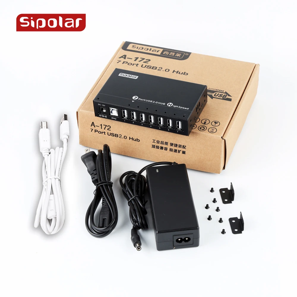 Sipolar A-172 новый дизайн USB 2,0 HUB с 36 Вт 12 В 3 А адаптером питания, алюминиевый 7-портовый USB-концентратор для зарядного устройства, черный