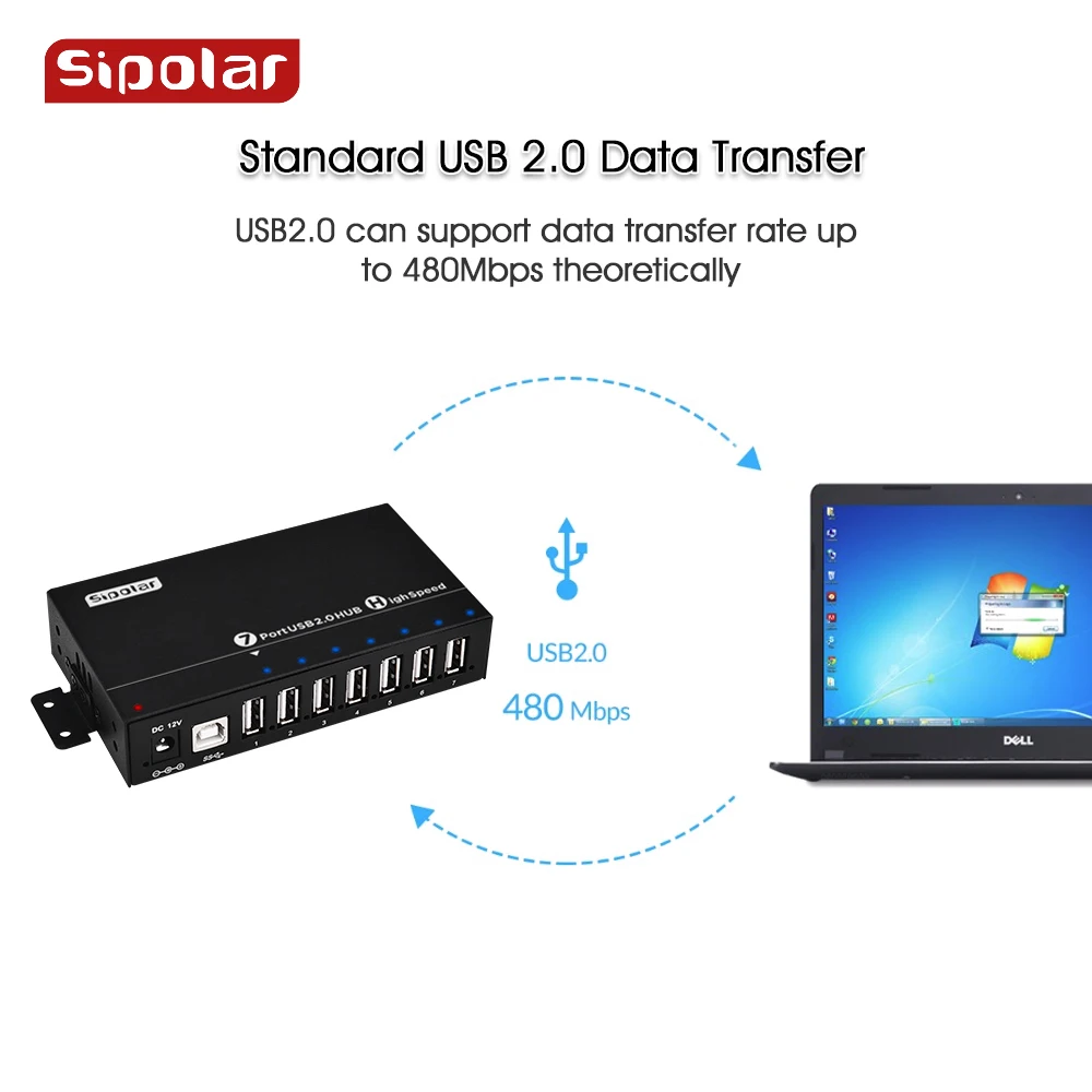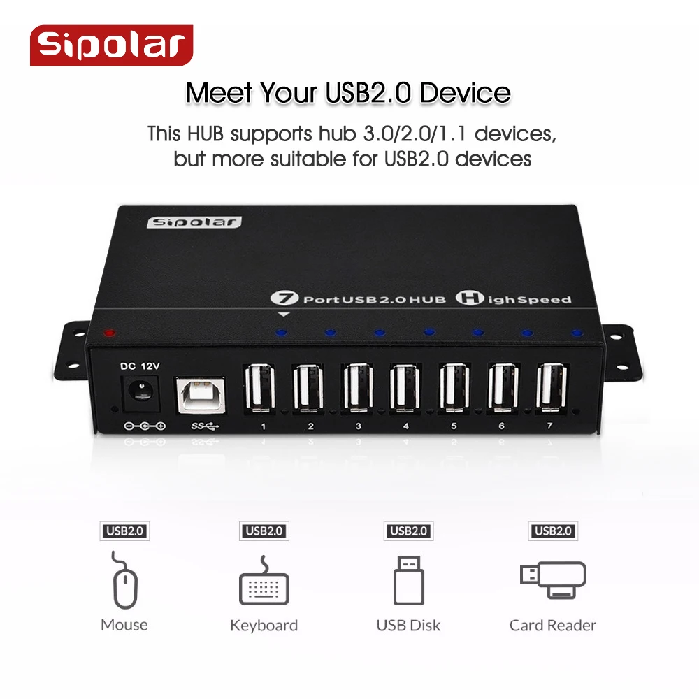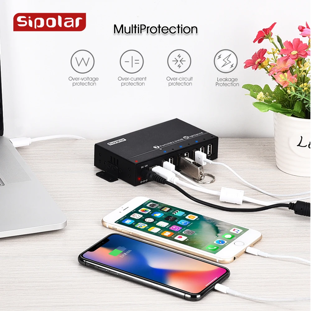 Sipolar New mini USB 2.0 HUB design With 36W 12V3A Power Adapter Aluminum 7...
