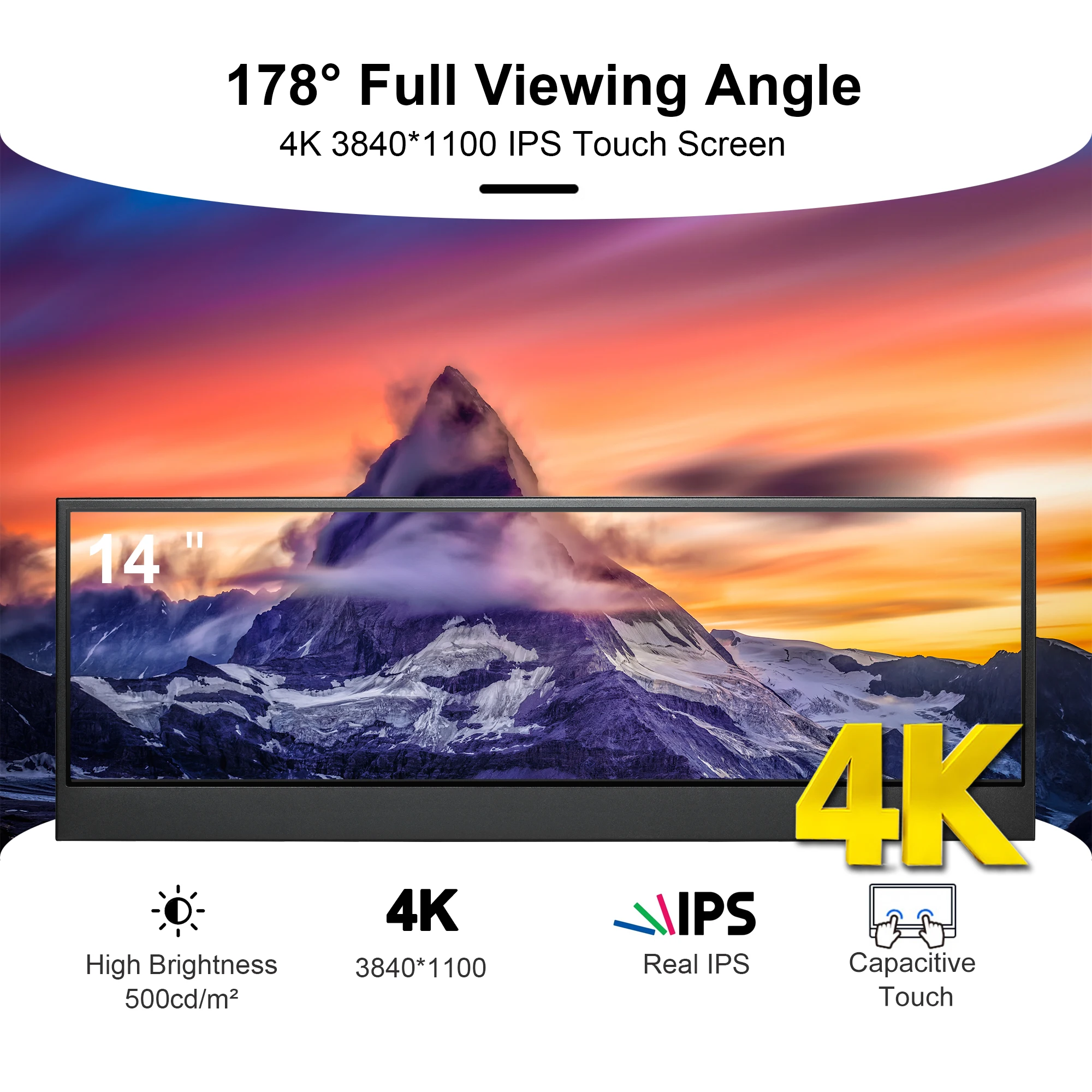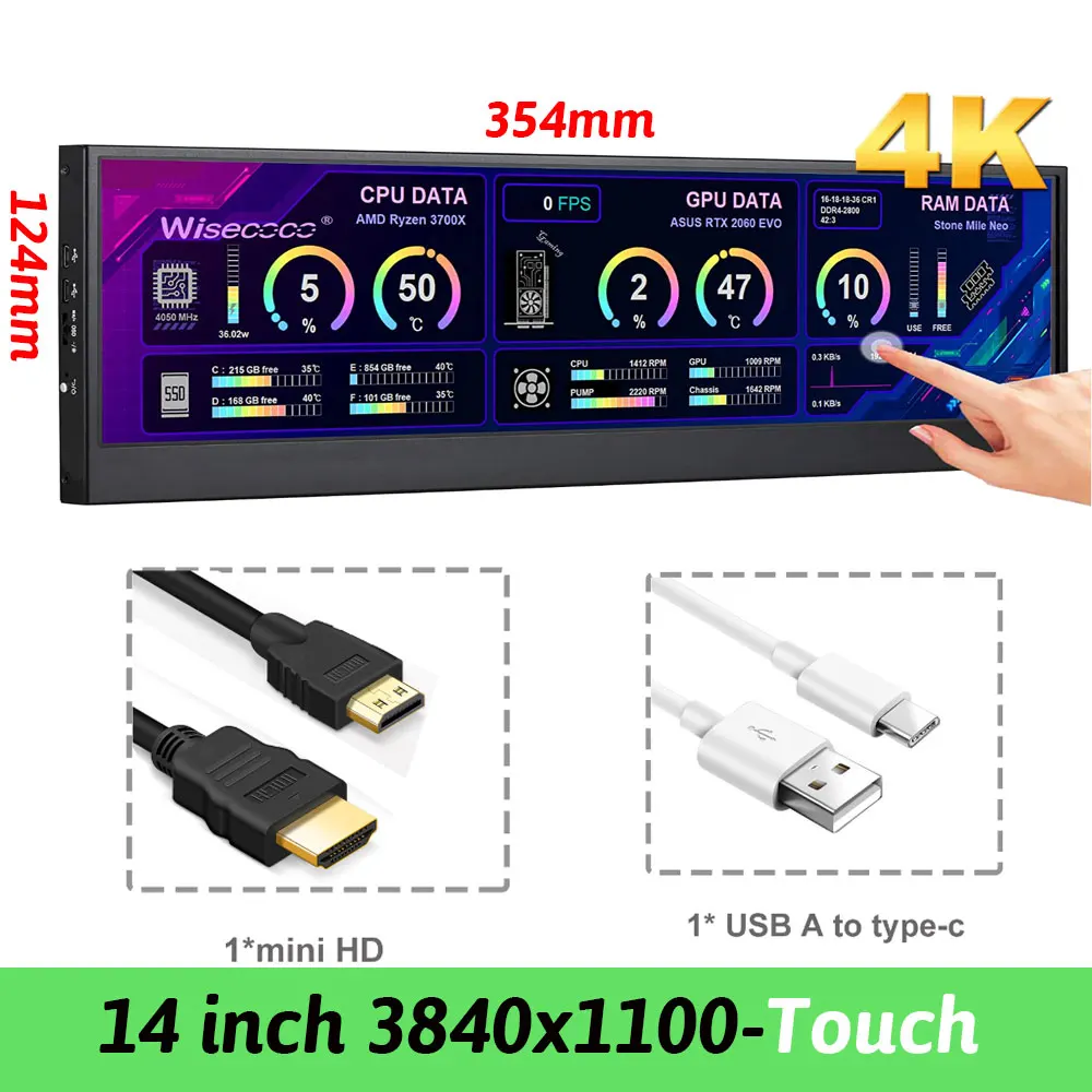 - 14 inch monitor:4k 3840x1100 resolution,touch function available