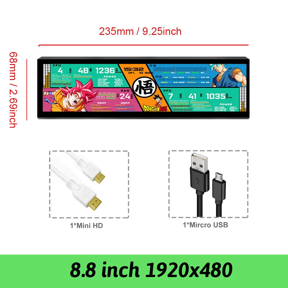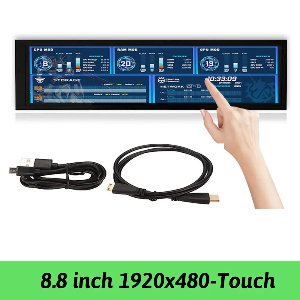 (2) Модель 2 8,8-дюймовый дополнительный монитор ПК-разрешение-1920x480