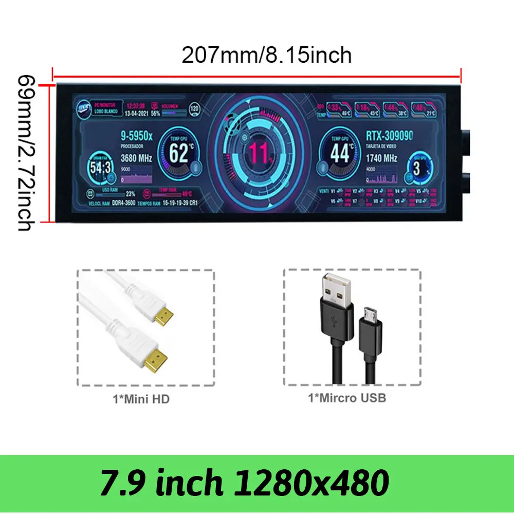 - 7.84 inch monitor:1280x400 resolution, no touch function