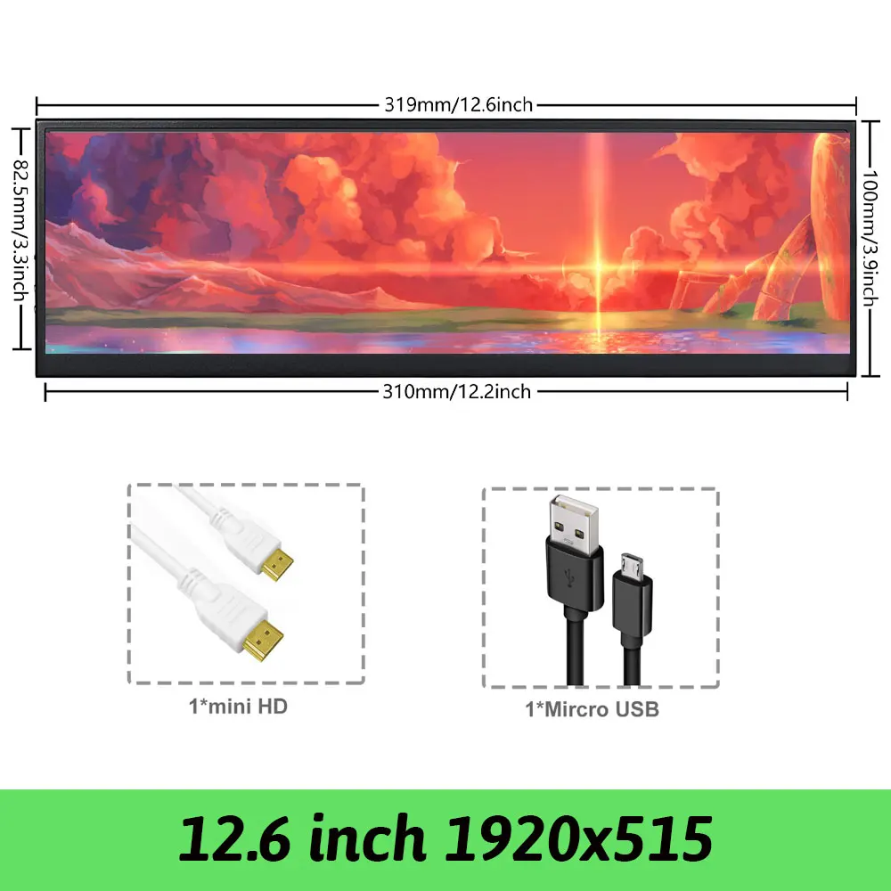 Модель 4 12,6-дюймовый дополнительный монитор ПК с разрешением-1920x515