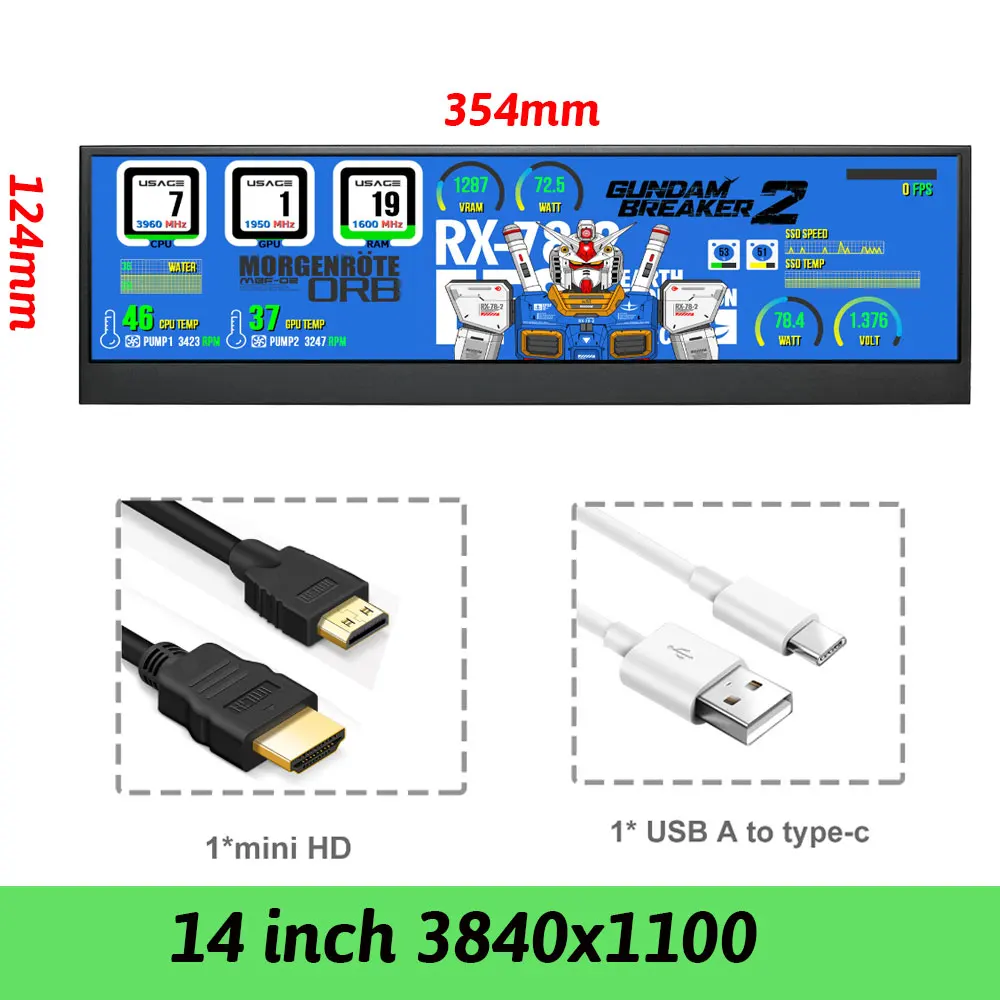 Модель 6---14 дюймов Домонитор ПК --- разрешение 3840x1100