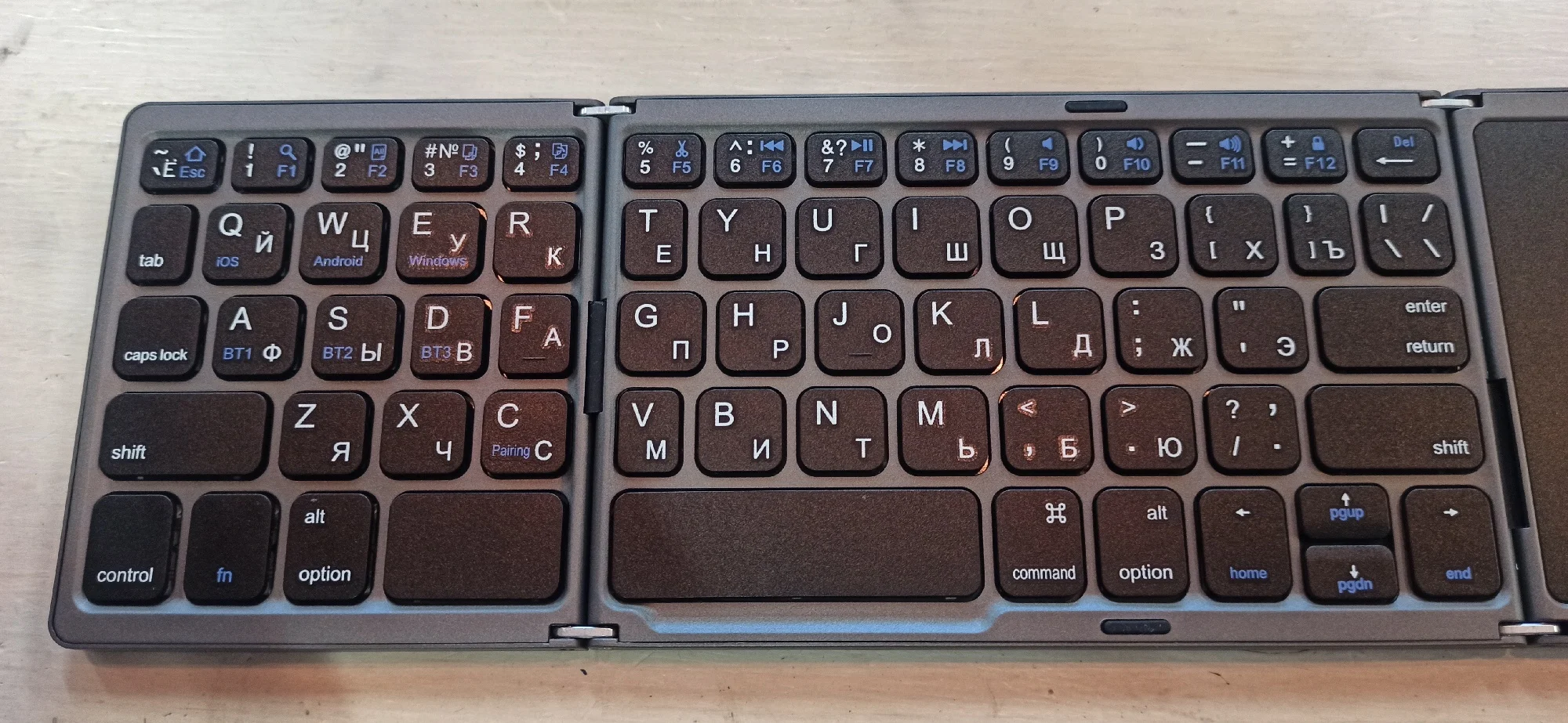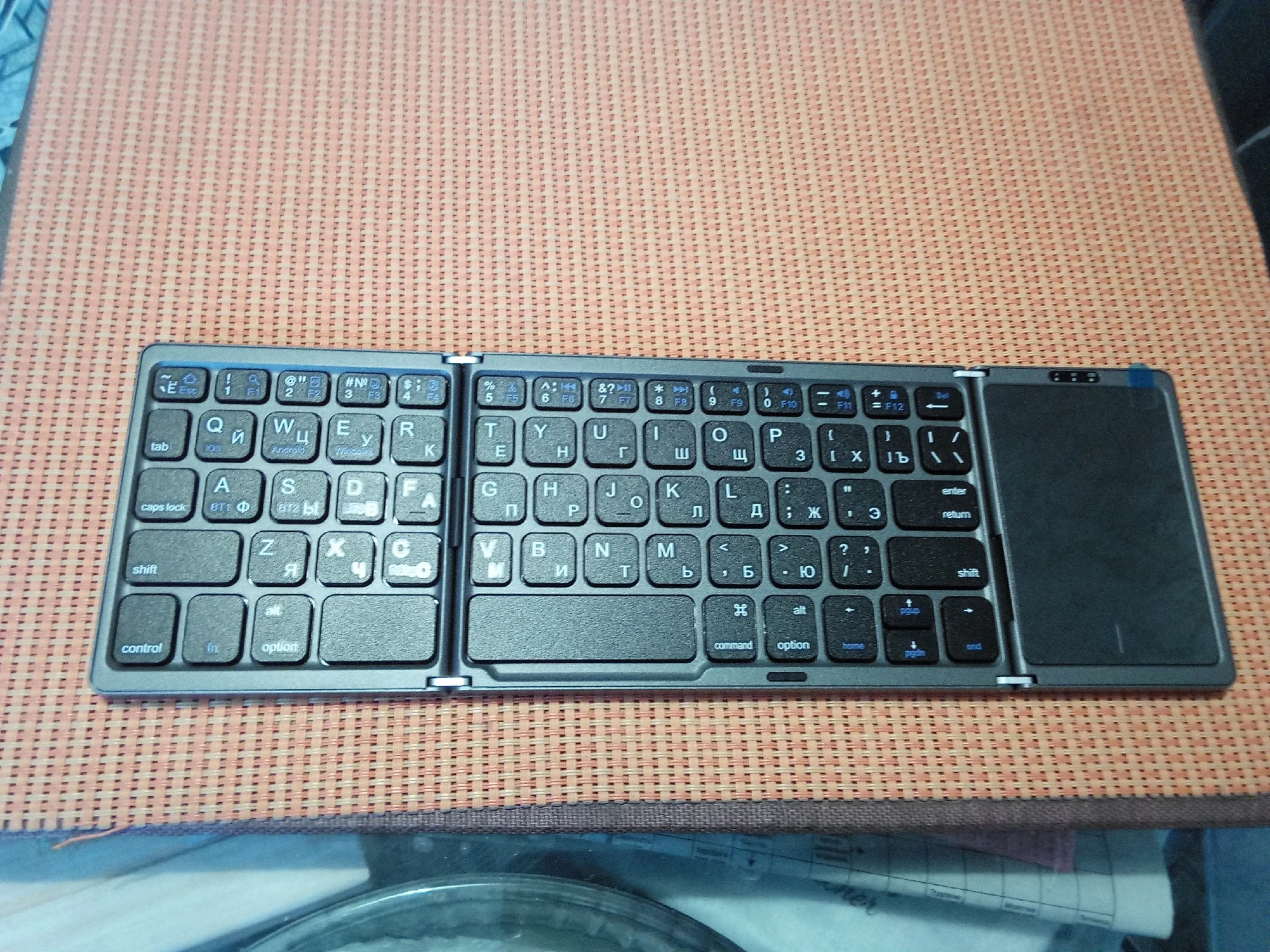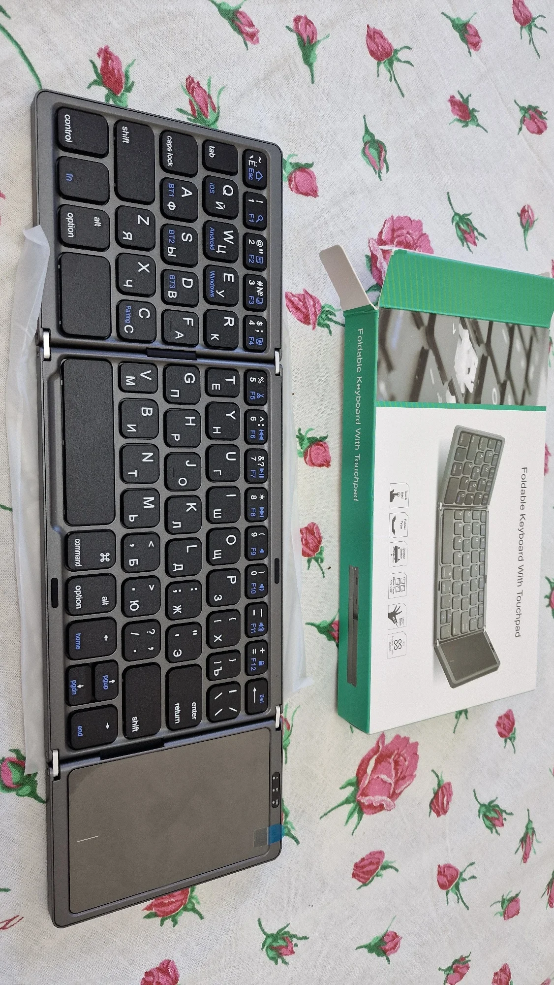 первые впечатления - положительные. клавиатура компактная, размером с Redmi note 8 pro. половинки удерживаются закрытыми с помощью магнитов. зарядка type-C. с планшетом Huawei и телефоном Xiaomi соединяется без проблем, только надо настроить раскладки в настройках андроида. тачпад поддерживает мультитач и жесты, очень удобно работать. хороший вариант если нужен "офис на бегу". к раскладке надо привыкать, из-за сгиба кнопки чуть смещены, два пробела... но оно того стоит.