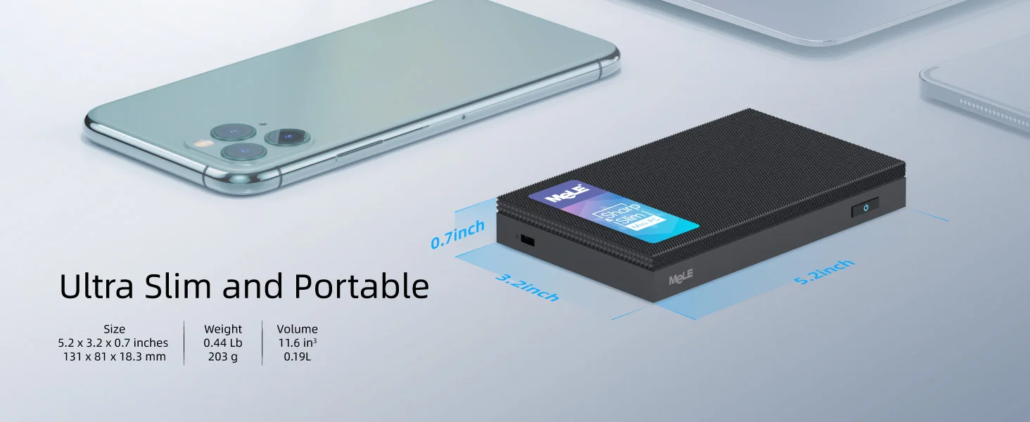 MeLE Ultra Thin Mini PC N100 LPDDR4 Windows 11 16GB 512GB Fanless Small Desktop...
