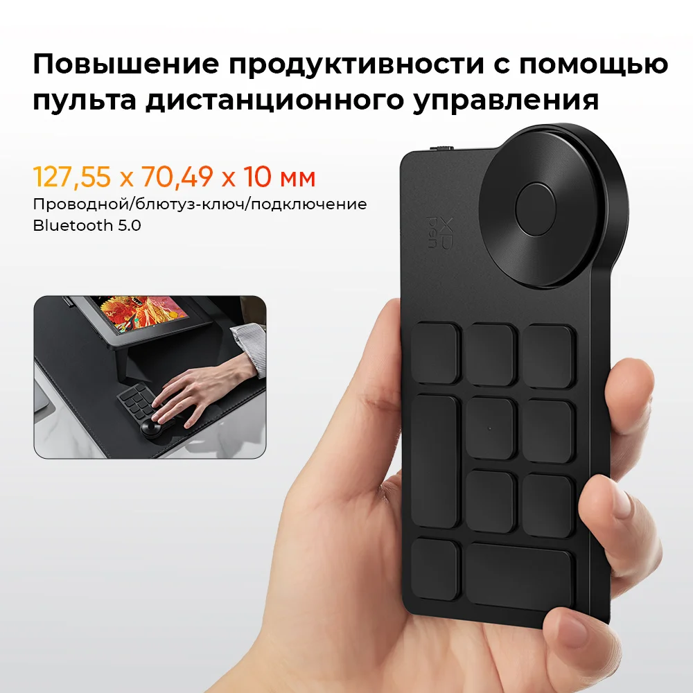 Беспроводной пульт дистанционного управления ярлыком позволяет упростить доступ к функциям для быстрого внесения изменений. Поддержка проводного подключения и подключения Bluetooth для плавной адаптации к различным настройкам рабочего пространства. Удобный и портативный.