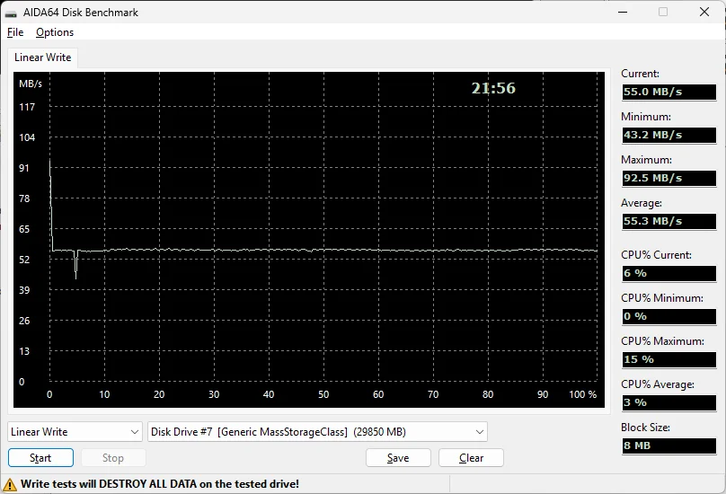- Performance 128GB - 256GB:up to 100MB/s read, up to 45MB/s write