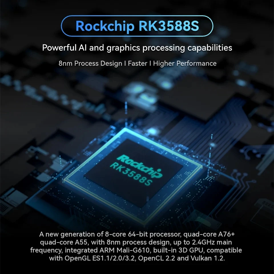 - Chip:Rockchip RK3588S (8nm LP process)